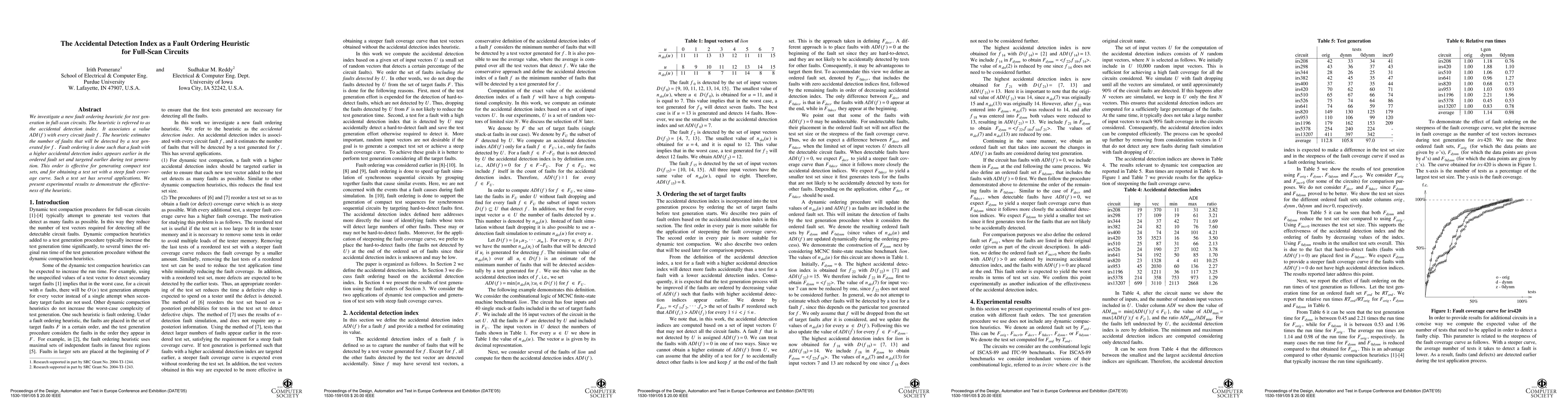 This research introduces the Accidental Detection Index (ADI) as a fault ordering heuristic for generating compact test sets in full-scan circuits. Experimental results demonstrate its effectiveness in producing tests that cover a high number of faults early, making it useful for various applications.