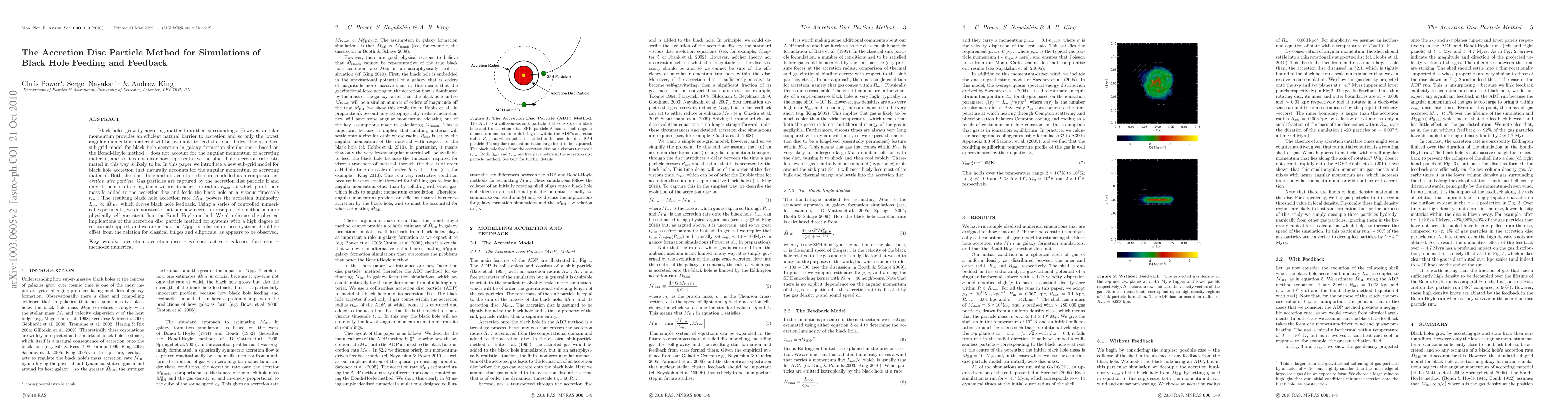 Black holes grow by accreting matter from their surroundings. However, angular momentum provides an efficient natural barrier to accretion and so only the lowest angular momentum material will be available to feed the black holes. The standard sub-grid model for black hole accretion in galaxy formation simulations - based on the Bondi-Hoyle method - does not account for the angular momentum of accreting material, and so it is unclear how representative the black hole accretion rate estimated in this way is likely to be. In this paper we introduce a new sub-grid model for black hole accretion that naturally accounts for the angular momentum of accreting material. Both the black hole and its accretion disc are modelled as a composite accretion disc particle. Gas particles are captured by the accretion disc particle if and only if their orbits bring them within its accretion radius R_acc, at which point their mass is added to the accretion disc and feeds the black hole on a viscous timescale t_visc. The resulting black hole accretion rate (dM/dt)_BH powers the accretion luminosity L_acc ~ (dM/dt)_BH, which drives black hole feedback. Using a series of controlled numerical experiments, we demonstrate that our new accretion disc particle method is more physically self-consistent than the Bondi-Hoyle method. We also discuss the physical implications of the accretion disc particle method for systems with a high degree of rotational support, and we argue that the M_BH-sigma relation in these systems should be offset from the relation for classical bulges and ellipticals, as appears to be observed.