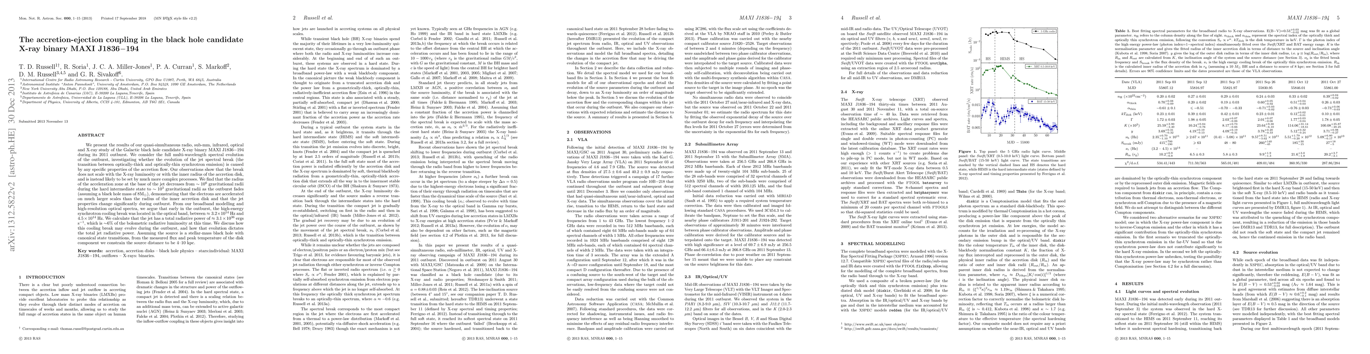 We present the results of our quasi-simultaneous radio, sub-mm, infrared, optical and X-ray study of the Galactic black hole candidate X-ray binary MAXI J1836-194 during its 2011 outburst. We consider the full multi-wavelength spectral evolution of the outburst, investigating whether the evolution of the jet spectral break (the transition between optically-thick and optically-thin synchrotron emission) is caused by any specific properties of the accretion flow. Our observations show that the break does not scale with the X-ray luminosity or with the inner radius of the accretion disk, and is instead likely to be set by much more complex processes. We find that the radius of the acceleration zone at the base of the jet decreases from ~10$^6$ gravitational radii during the hard intermediate state to ~10$^3$ gravitational radii as the outburst fades (assuming a black hole mass of 8 M$_{\odot}$), demonstrating that the electrons are accelerated on much larger scales than the radius of the inner accretion disk and that the jet properties change significantly during outburst. From our broadband modelling and high-resolution optical spectra, we argue that early in the outburst, the high-energy synchrotron cooling break was located in the optical band, between $\approx 3.2 \times 10^{14}$ Hz and $4.5 \times 10^{14}$ Hz. We calculate that the jet has a total radiative power of $\approx 3.1 \times 10^{36}$ ergs s$^{-1}$, which is ~6% of the bolometric radiative luminosity at this time. We discuss how this cooling break may evolve during the outburst, and how that evolution dictates the total jet radiative power. Assuming the source is a stellar-mass black hole with canonical state transitions, from the measured flux and peak temperature of the disk component we constrain the source distance to be 4-10 kpc.
