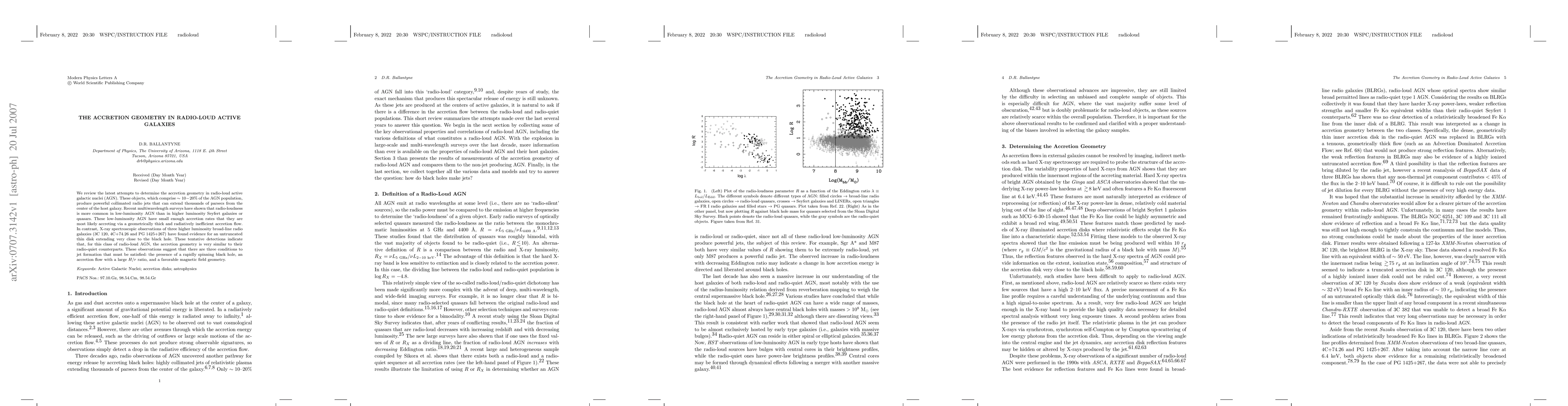 This paper reviews the accretion geometry in radio-loud active galactic nuclei, finding that low-luminosity AGN likely accrete via thick, inefficient flows, while higher luminosity AGN show evidence of thin disks similar to radio-quiet counterparts. Jet formation requires a rapidly spinning black hole, high H/r ratio, and a suitable magnetic field geometry.