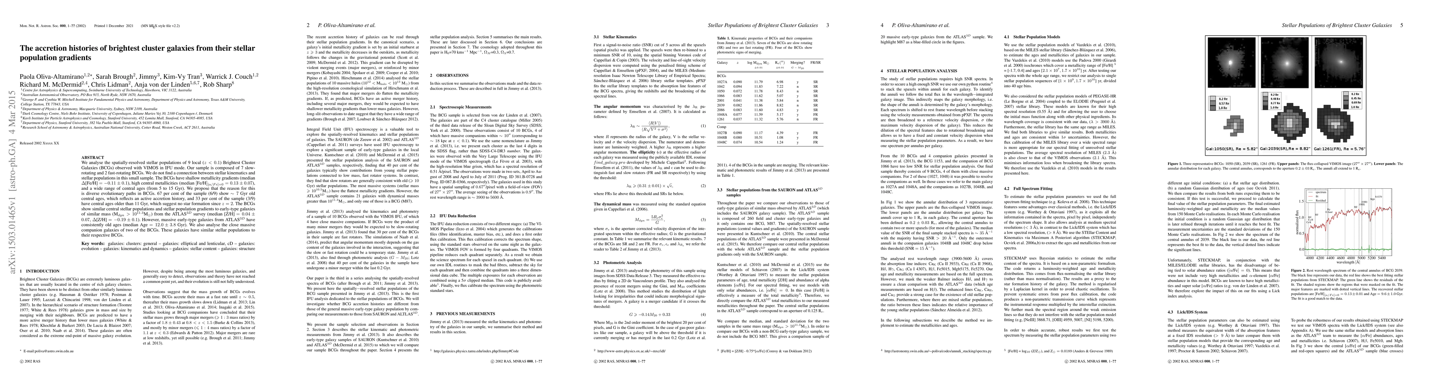 This study analyzes the spatially-resolved stellar populations of nine local Brightest Cluster Galaxies (BCGs), revealing diverse evolutionary paths and accretion histories. The BCGs show a wide range of central ages and shallow metallicity gradients, suggesting varied formation and star formation histories.