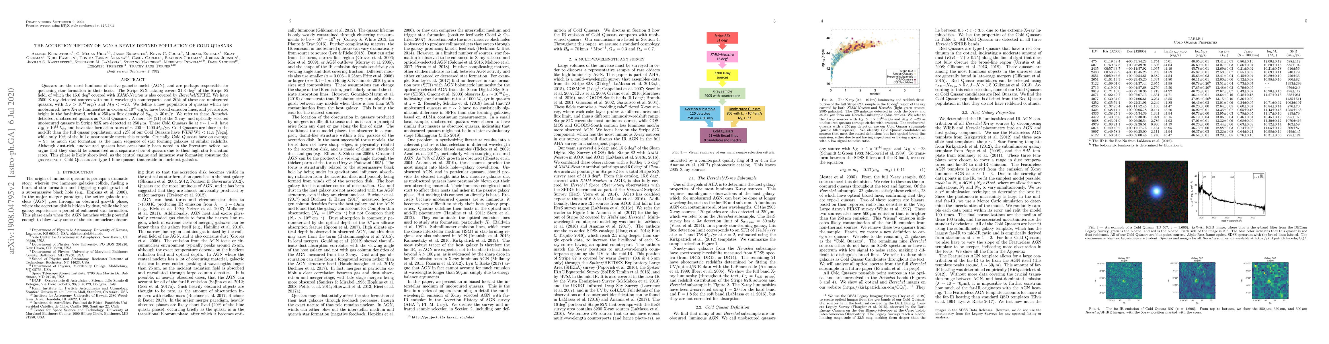 Quasars are the most luminous of active galactic nuclei (AGN), and are perhaps responsible for quenching star formation in their hosts. The Stripe 82X catalog covers 31.3 deg$^2$ of the Stripe 82 field, of which the 15.6 deg$^2$ covered with XMM-Newton is also covered by Herschel/SPIRE. We have 2500 X-ray detected sources with multi-wavelength counterparts, and 30% of these are unobscured quasars, with $L_X > 10^{44}\,$erg/s and $M_B < -23$. We define a new population of quasars which are unobscured, have X-ray luminosities in excess of $10^{44}\,$erg/s, have broad emission lines, and yet are also bright in the far-infrared, with a 250$\mu$m flux density of $S_{\rm 250}>30$mJy. We refer to these Herschel-detected, unobscured quasars as "Cold Quasars". A mere 4% (21) of the X-ray- and optically-selected unobscured quasars in Stripe 82X are detected at 250$\mu$m. These Cold Quasars lie at $z\sim1-3$, have $L_{\rm IR}>10^{12}\,L_\odot$, and have star formation rates of $\sim200-1400\,M_\odot$/yr. Cold Quasars are bluer in the mid-IR than the full quasar population, and 72% of our Cold Quasars have WISE W3 $<$ 11.5 [Vega], while only 19% of the full quasar sample meets this criteria. Crucially, Cold Quasars have on average $\sim9\times$ as much star formation as the main sequence of star forming galaxies at similar redshifts. Although dust-rich, unobscured quasars have occasionally been noted in the literature before, we argue that they should be considered as a separate class of quasars due to their high star formation rates. This phase is likely short-lived, as the central engine and immense star formation consume the gas reservoir. Cold Quasars are type-1 blue quasars that reside in starburst galaxies.