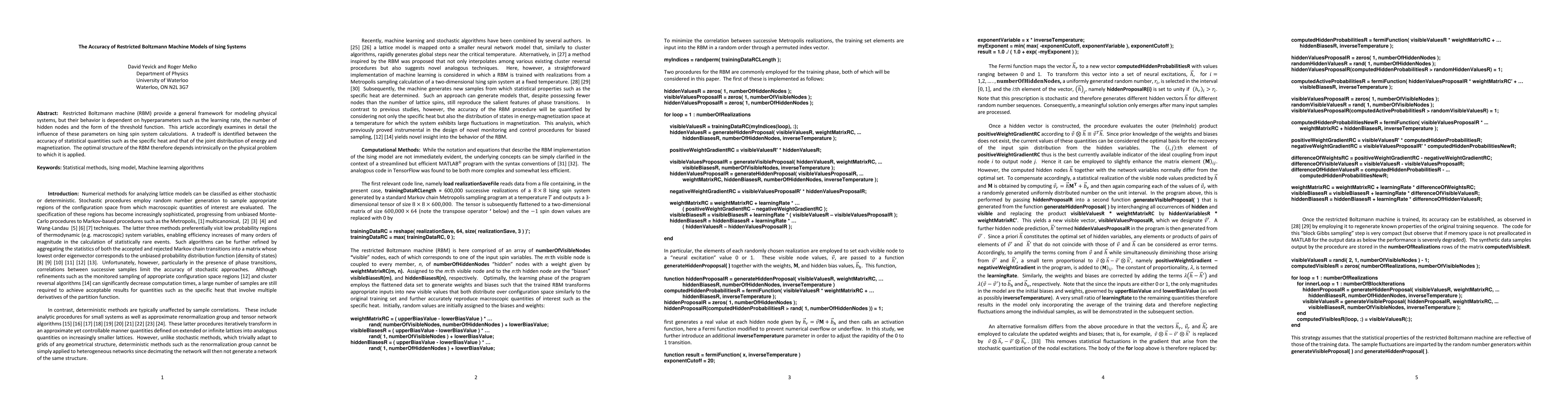 This paper investigates how hyperparameters in Restricted Boltzmann Machine (RBM) models affect the accuracy of Ising spin system calculations, identifying a tradeoff between statistical accuracy and joint distribution accuracy, and concluding that the optimal RBM structure varies based on the specific physical problem.