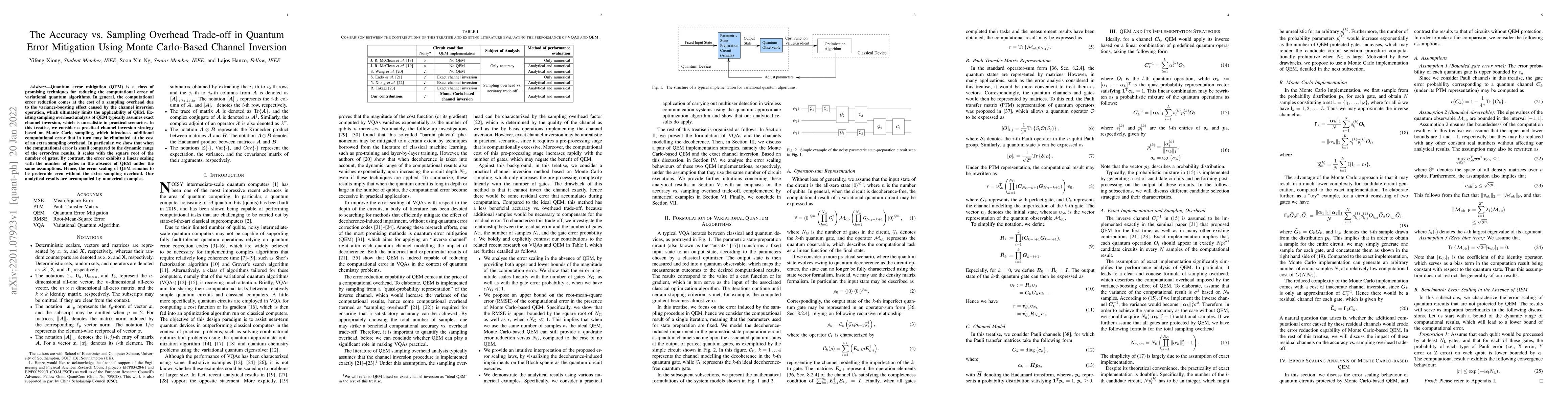 Quantum error mitigation (QEM) is a class of promising techniques for reducing the computational error of variational quantum algorithms. In general, the computational error reduction comes at the cost of a sampling overhead due to the variance-boosting effect caused by the channel inversion operation, which ultimately limits the applicability of QEM. Existing sampling overhead analysis of QEM typically assumes exact channel inversion, which is unrealistic in practical scenarios. In this treatise, we consider a practical channel inversion strategy based on Monte Carlo sampling, which introduces additional computational error that in turn may be eliminated at the cost of an extra sampling overhead. In particular, we show that when the computational error is small compared to the dynamic range of the error-free results, it scales with the square root of the number of gates. By contrast, the error exhibits a linear scaling with the number of gates in the absence of QEM under the same assumptions. Hence, the error scaling of QEM remains to be preferable even without the extra sampling overhead. Our analytical results are accompanied by numerical examples.