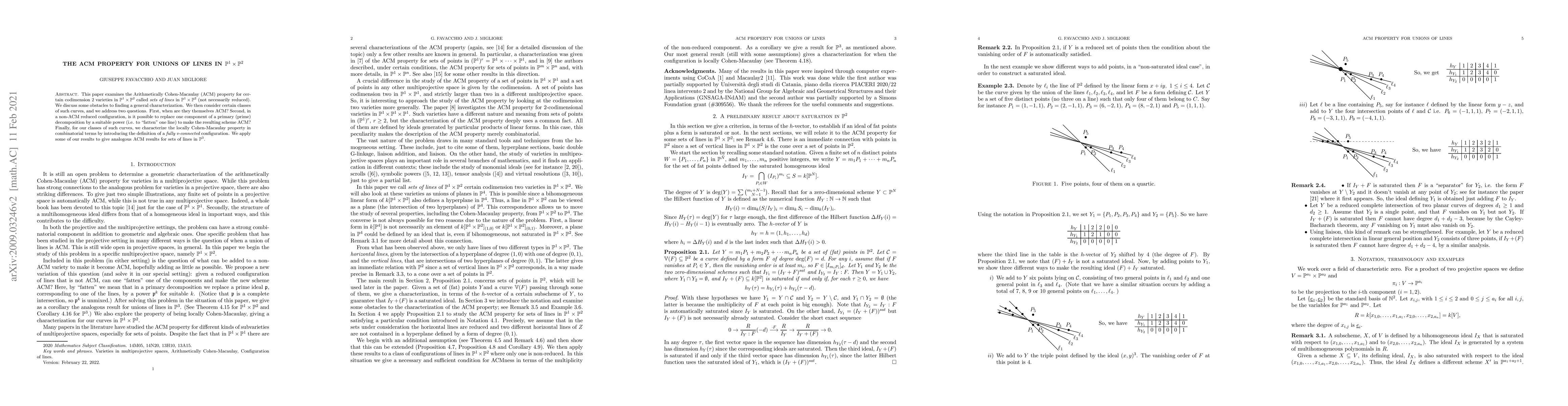 This paper examines the Arithmetically Cohen-Macaulay (ACM) property for certain codimension 2 varieties in $\mathbb P^1\times \mathbb P^2$ called sets of lines in $\mathbb P^1\times \mathbb P^2$ (not necessarily reduced). We discuss some obstacles to finding a general characterization. We then consider certain classes of such curves, and we address two questions. First, when are they themselves ACM? Second, in a non-ACM reduced configuration, is it possible to replace one component of a primary (prime) decomposition by a suitable power (i.e. to "fatten" one line) to make the resulting scheme ACM? Finally, for our classes of such curves, we characterize the locally Cohen-Macaulay property in combinatorial terms by introducing the definition of a fully v-connected configuration. We apply some of our results to give analogous ACM results for sets of lines in $\mathbb P^3$.