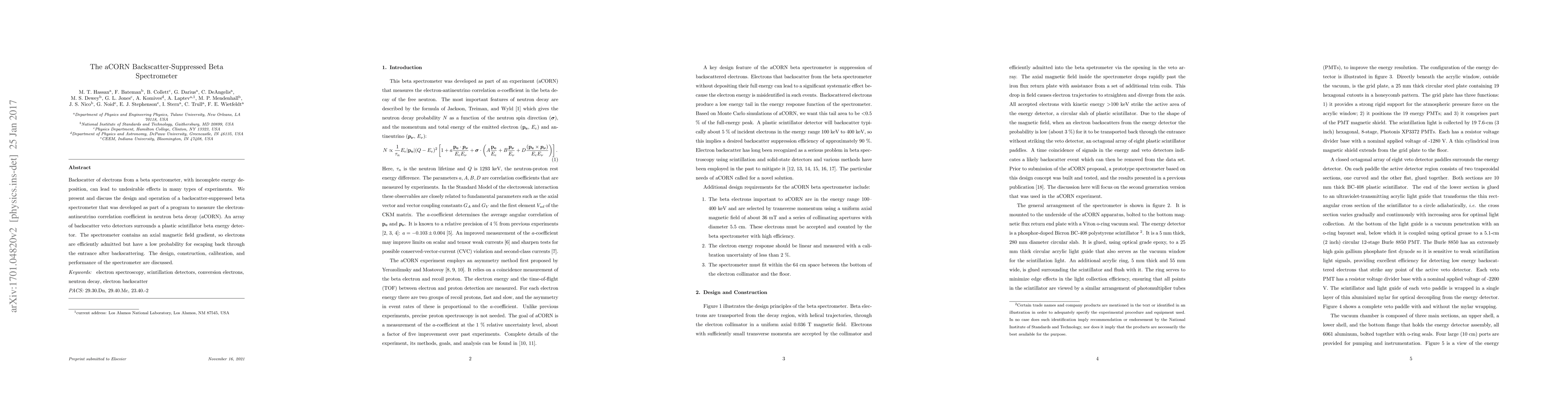 Backscatter of electrons from a beta spectrometer, with incomplete energy deposition, can lead to undesirable effects in many types of experiments. We present and discuss the design and operation of a backscatter-suppressed beta spectrometer that was developed as part of a program to measure the electron-antineutrino correlation coefficient in neutron beta decay (aCORN). An array of backscatter veto detectors surrounds a plastic scintillator beta energy detector. The spectrometer contains an axial magnetic field gradient, so electrons are efficiently admitted but have a low probability for escaping back through the entrance after backscattering. The design, construction, calibration, and performance of the spectrometer are discussed.