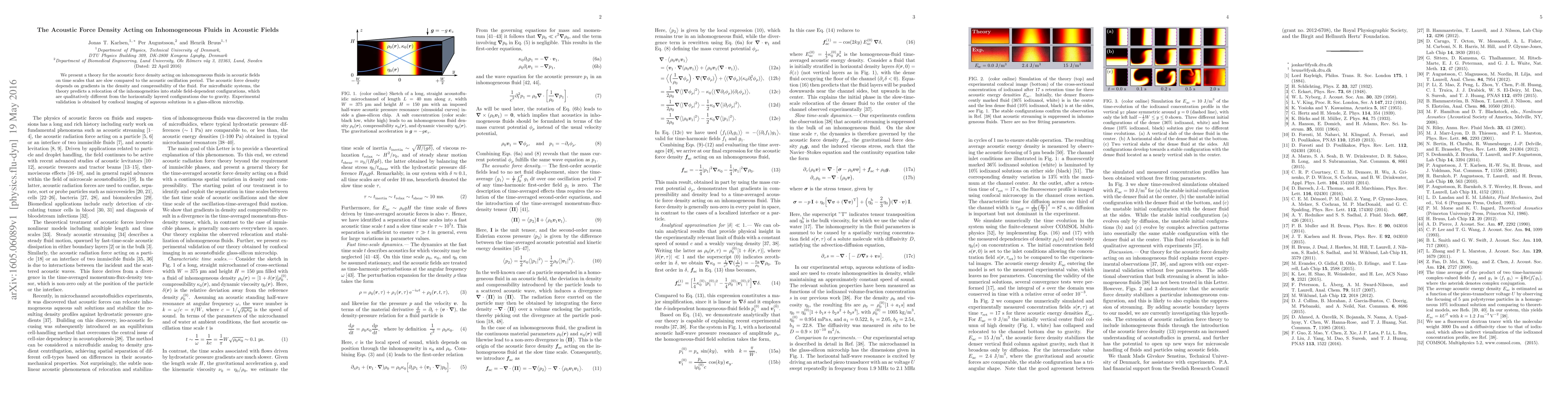 This paper presents a theoretical framework for understanding the acoustic force density on inhomogeneous fluids in acoustic fields, predicting stable, field-dependent configurations that differ from gravity-driven layering. Experimental validation using confocal imaging in microfluidic systems confirms these theoretical predictions.