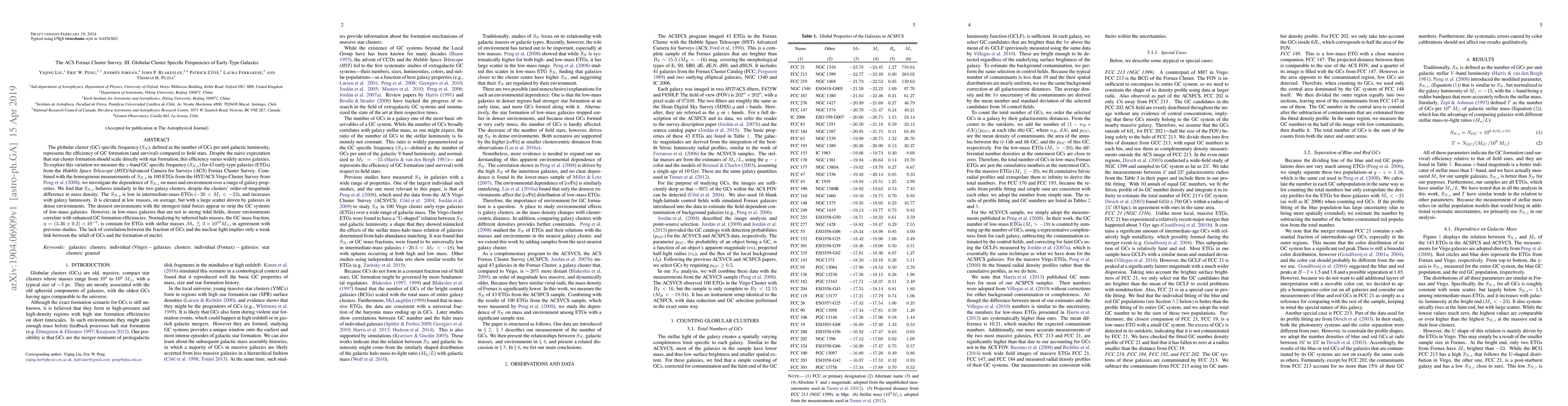 GC specific frequency ($S_{N,z}$) for 43 early-type galaxies (ETGs) from the