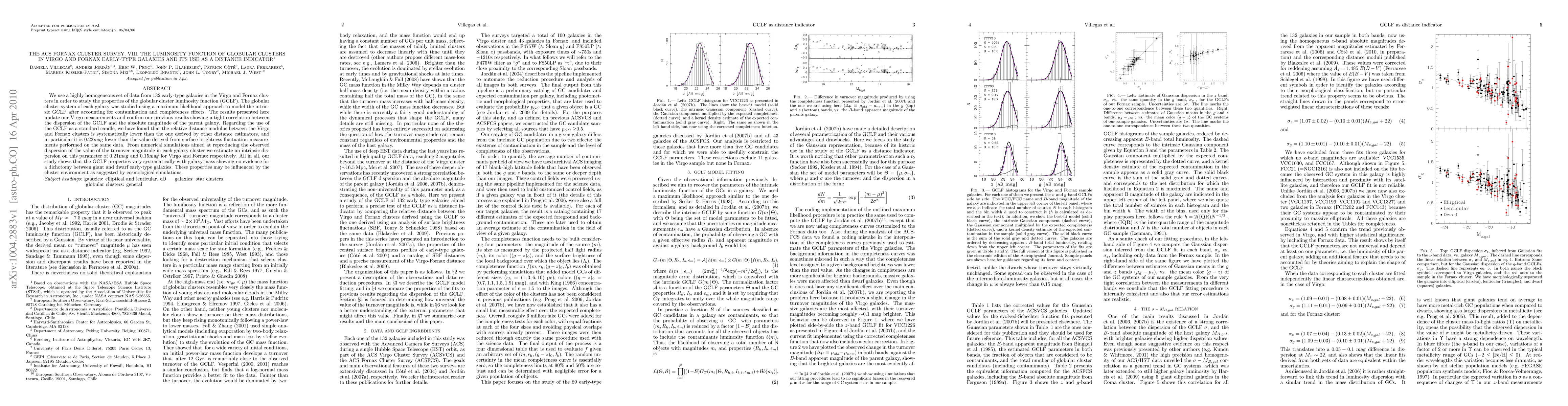 This study uses galaxy data to measure the luminosity function of globular clusters in early-type galaxies, finding a correlation between cluster dispersion and parent galaxy magnitude, and suggesting that this function could be used as a distance indicator with minimal error.