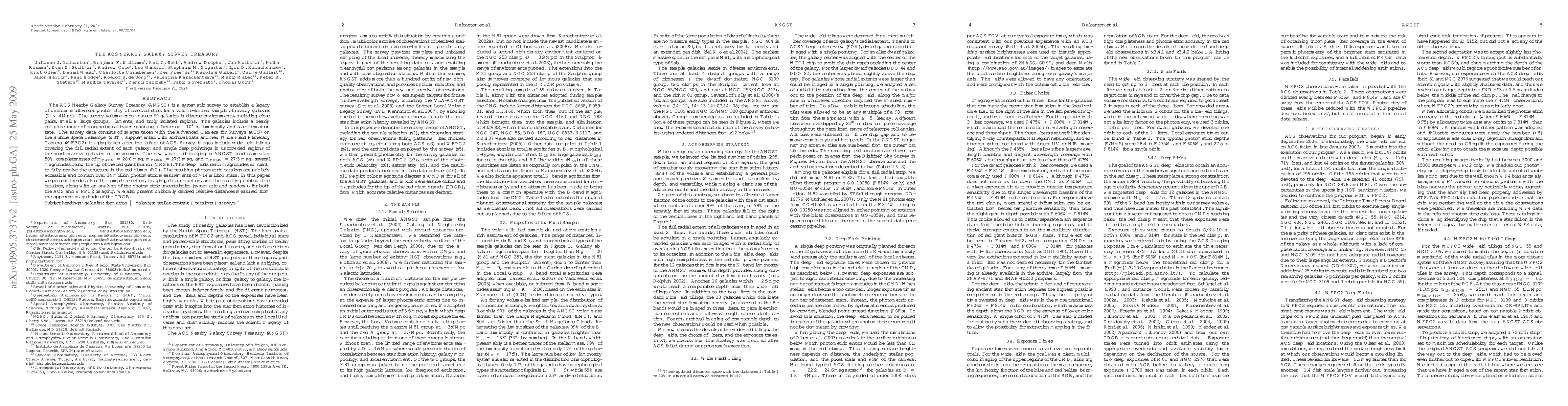 The ACS Nearby Galaxy Survey Treasury (ANGST) systematically captures uniform multi-color photometry for 69 nearby galaxies, providing detailed star catalogs and relative distances based on the TRGB. The survey's wide field and deep imaging reach magnitudes sufficient to resolve stellar structures, resulting in over 34 million photometric measurements.