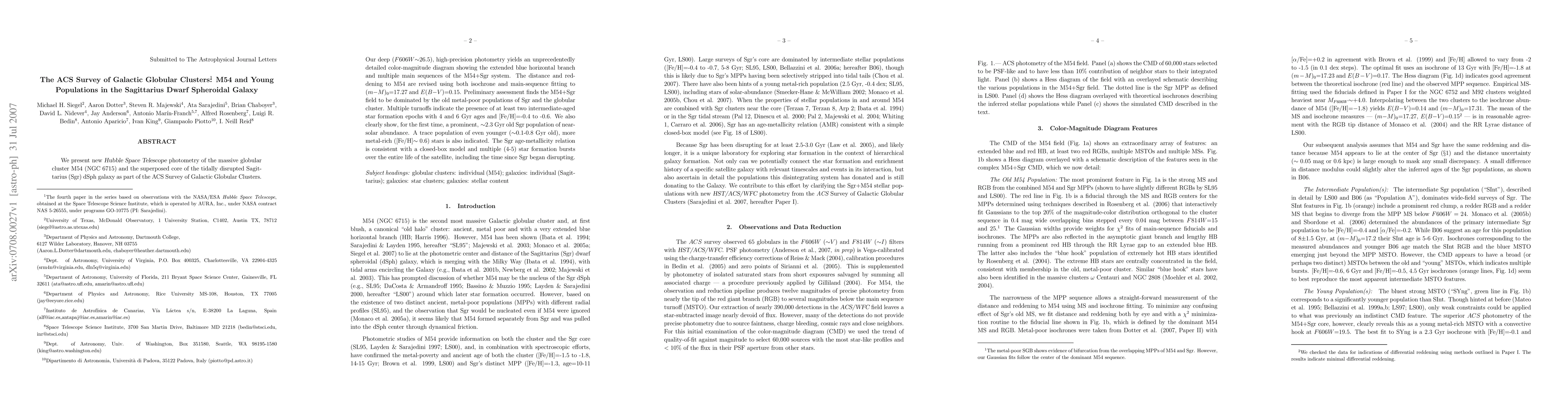 This paper uses Hubble Space Telescope data to analyze the globular cluster M54 and the Sagittarius Dwarf Spheroidal galaxy, revealing multiple star formation epochs and a young population in the Sagittarius galaxy. The study revises the distance and reddening to M54 and identifies at least two intermediate-aged star formation bursts in the Sagittarius system.