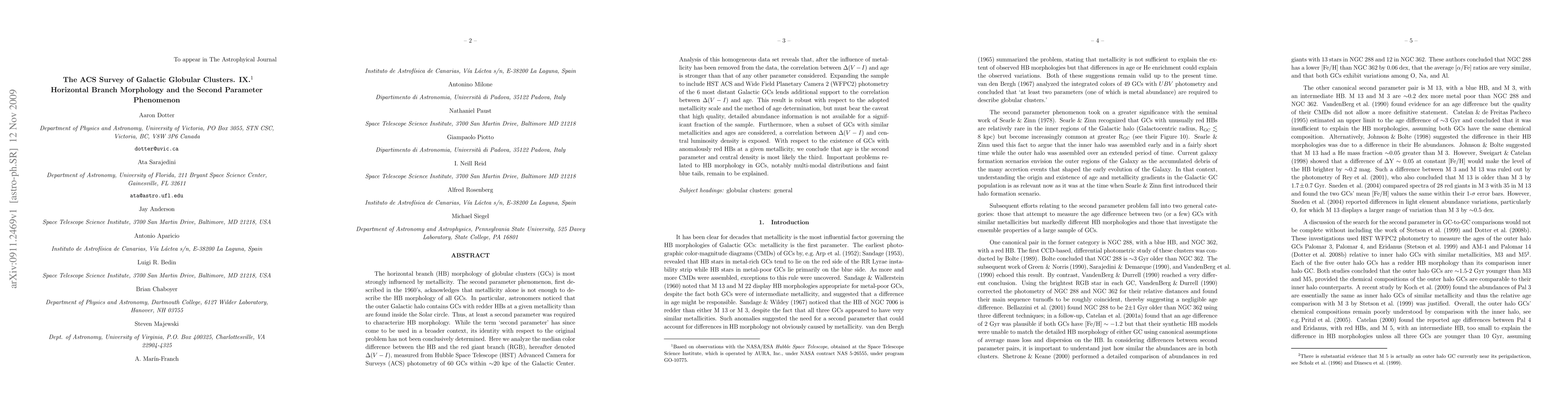 This paper investigates the horizontal branch (HB) morphology of 60 globular clusters (GCs) using HST ACS photometry, revealing that age is the second parameter influencing HB morphology after metallicity. A correlation between the median color difference d(V-I) and age is identified, suggesting age is crucial for explaining GCs with anomalously red HBs at a given metallicity.