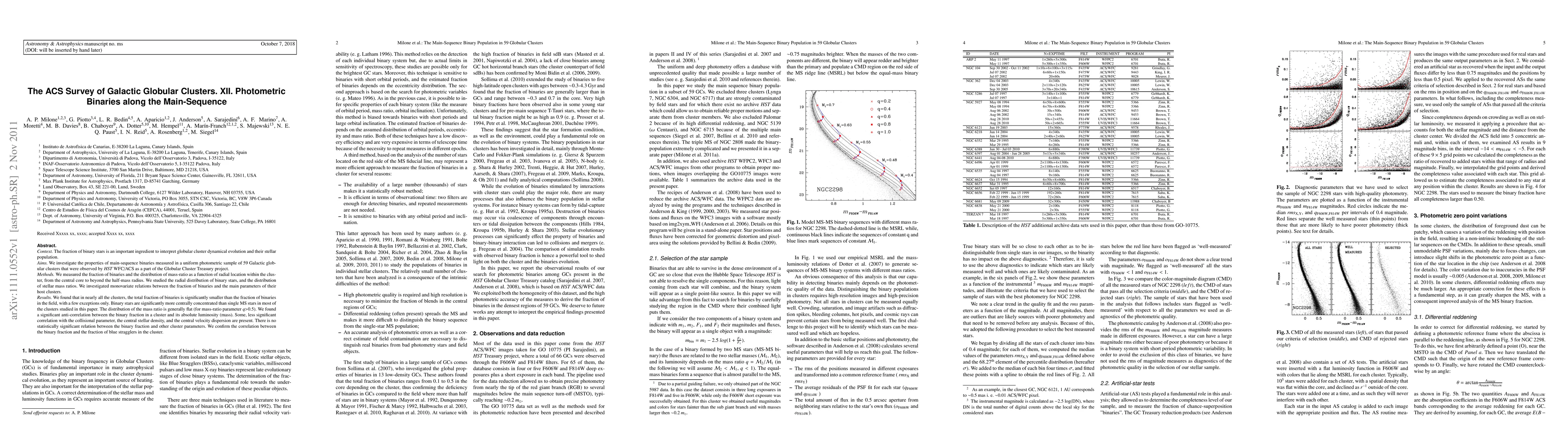 This study investigates the properties of main-sequence binaries in 59 Galactic globular clusters, revealing that binary fractions are generally lower than in the field, with a notable central concentration. The research found a significant anti-correlation between binary fraction and cluster luminosity, and a correlation with blue stragglers.