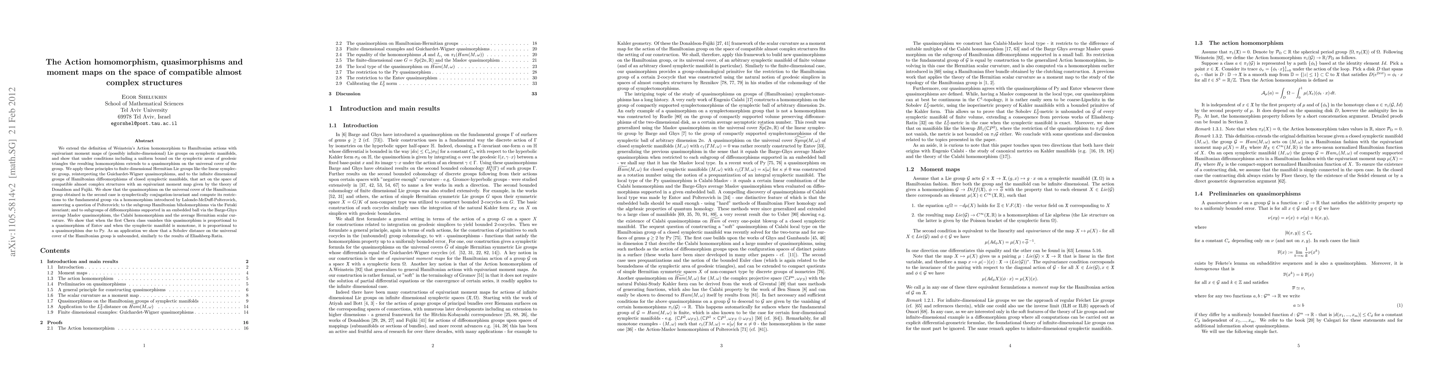 This paper extends Weinstein's Action homomorphism to Hamiltonian actions with equivariant moment maps on symplectic manifolds, proving the resulting homomorphism extends to a quasimorphism under certain conditions. It applies these principles to finite-dimensional Hermitian Lie groups and infinite-dimensional Hamiltonian diffeomorphisms, establishing conjugation-invariance and computing restrictions to various subgroups.
