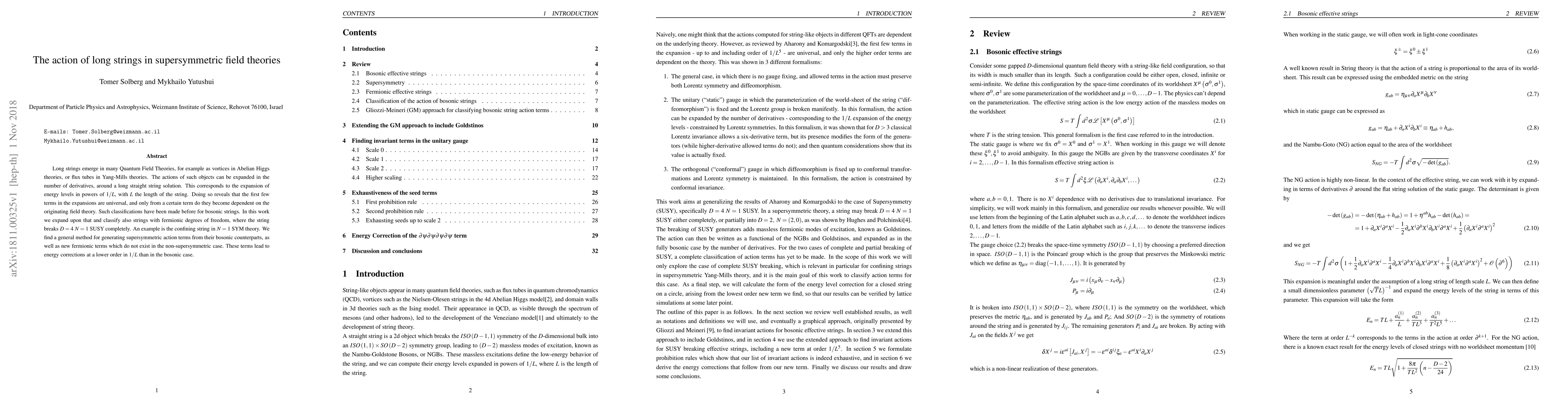 This paper explores the actions of long strings in supersymmetric field theories, revealing universal terms in the derivative expansion that apply across different field theories. It introduces a method for generating supersymmetric action terms from bosonic counterparts and identifies new fermionic terms that lead to energy corrections at a lower order in 1/L than in the bosonic case.