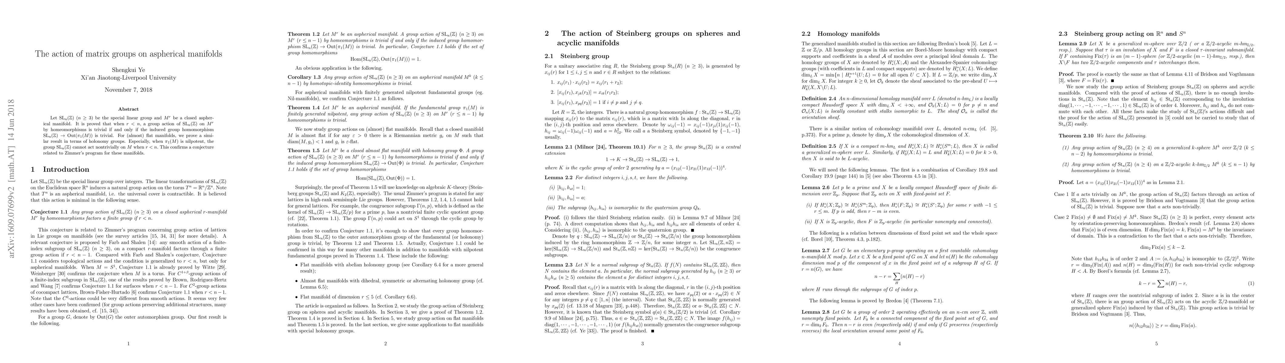 Researchers prove that a group action on aspherical manifolds is trivial if and only if a specific homomorphism into the outer automorphism group of the manifold's fundamental group is trivial.