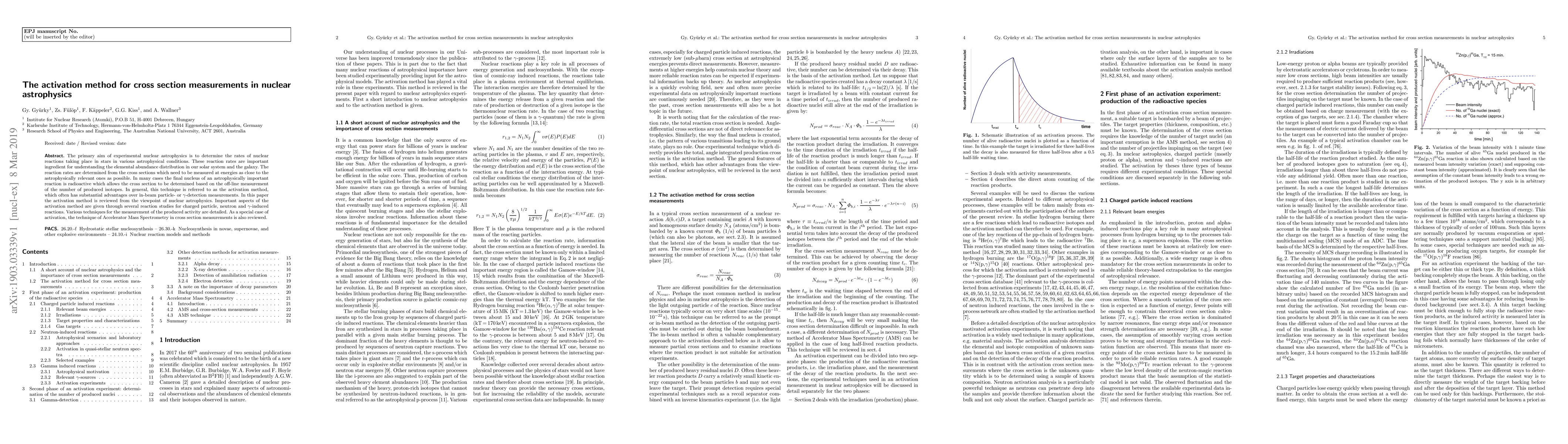 This paper reviews the activation method for measuring nuclear reaction cross sections relevant to nuclear astrophysics, emphasizing its advantages over in-beam methods. It details various techniques for measuring produced activity and discusses the special case of Accelerator Mass Spectrometry.