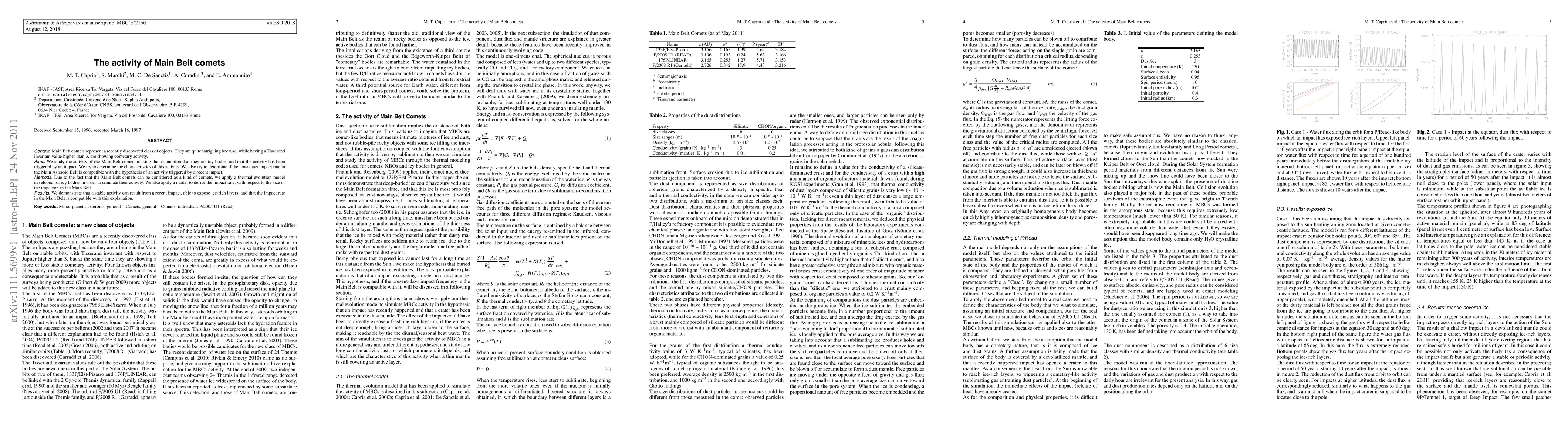 This paper explores the activity of Main Belt comets, suggesting they are icy bodies activated by recent impacts. It uses thermal evolution models and impact rate calculations to show that the observed activity can be explained by impacts exposing ice-rich layers, aligning with the current impact rate in the Main Asteroid Belt.