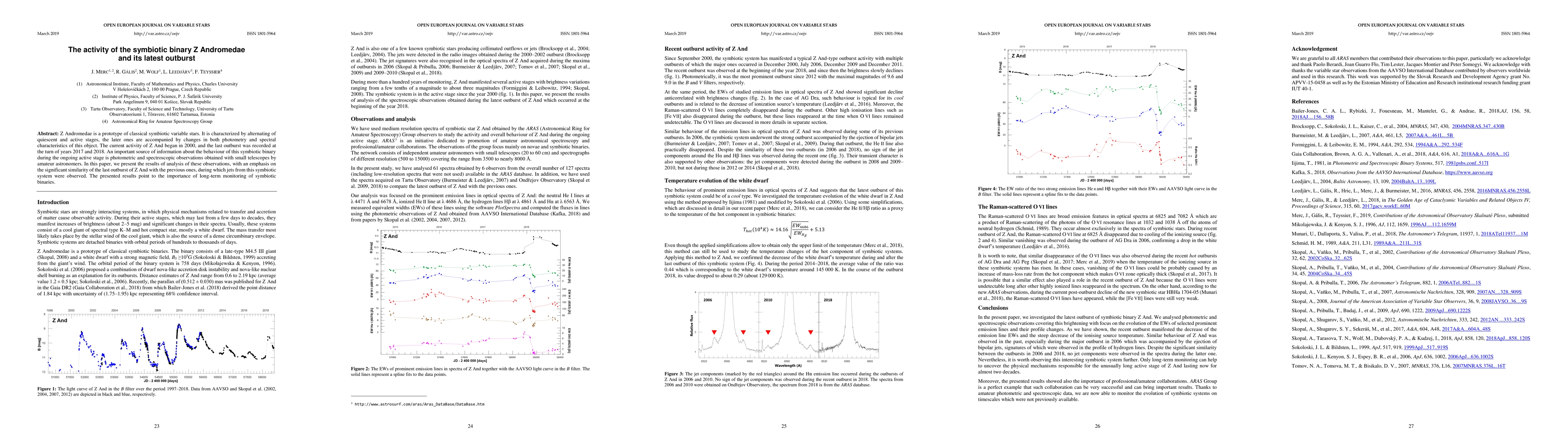 Z Andromedae, a symbiotic binary star, has shown ongoing activity since 2000, with its latest outburst in late 2017 to early 2018. Observations by amateur astronomers reveal significant similarities between this and previous outbursts, highlighting the importance of long-term monitoring of such systems.