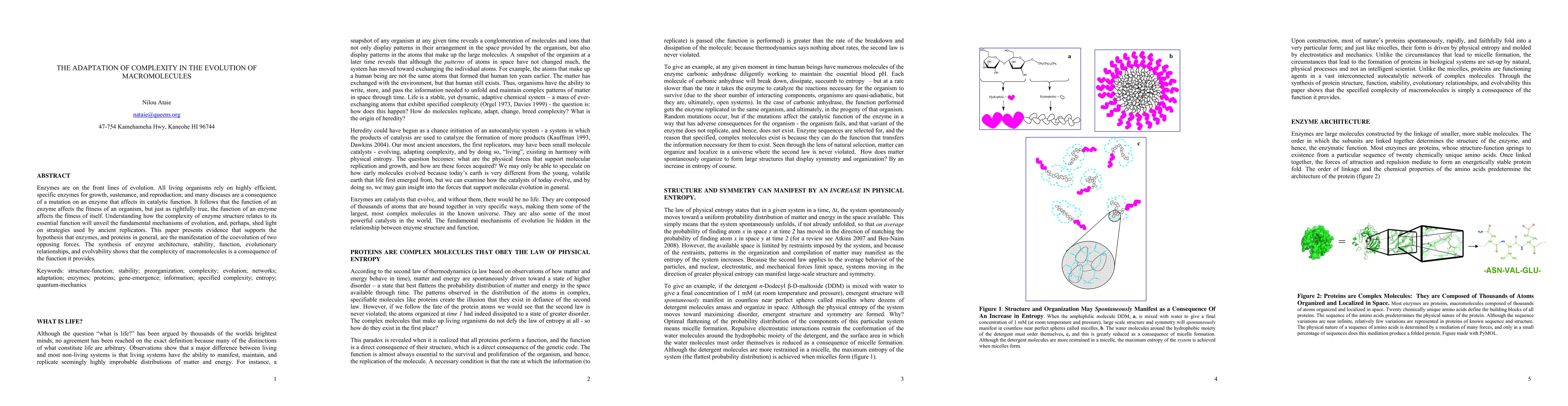 Enzymes are on the front lines of evolution. All living organisms rely on highly efficient, specific enzymes for growth, sustenance, and reproduction; and many diseases are a consequence of a mutation on an enzyme that affects its catalytic function. It follows that the function of an enzyme affects the fitness of an organism, but just as rightfully true, the function of an enzyme affects the fitness of itself. Understanding how the complexity of enzyme structure relates to its essential function will unveil the fundamental mechanisms of evolution, and, perhaps, shed light on strategies used by ancient replicators. This paper presents evidence that supports the hypothesis that enzymes, and proteins in general, are the manifestation of the coevolution of two opposing forces. The synthesis of enzyme architecture, stability, function, evolutionary relationships, and evolvability shows that the complexity of macromolecules is a consequence of the function it provides.