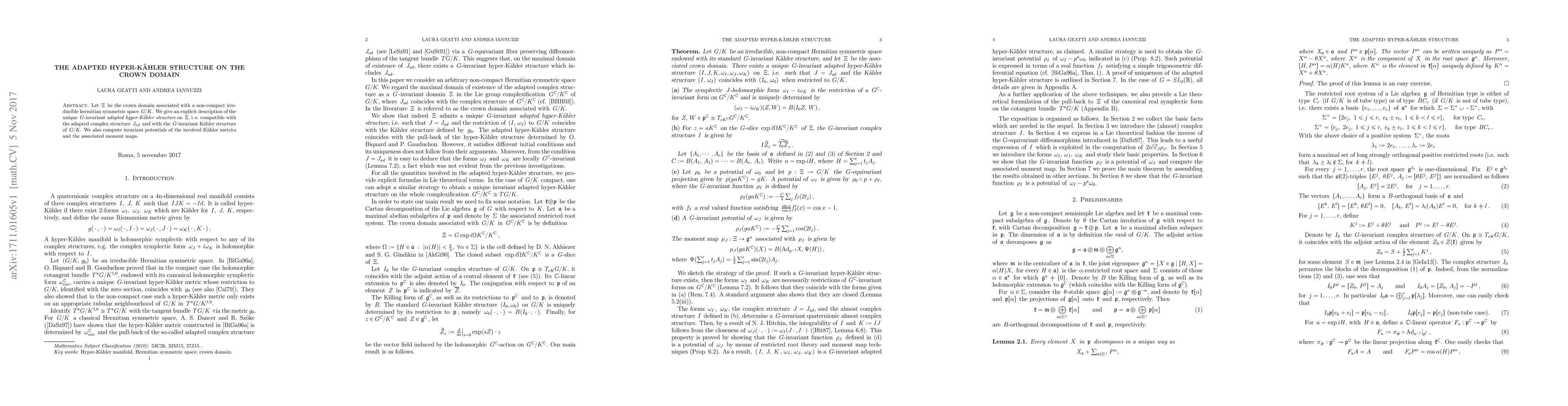 Researchers describe a unique hyper-K"ahler structure on the crown domain associated with non-compact irreducible hermitian symmetric spaces, compatible with existing complex structures and K"ahler metrics.