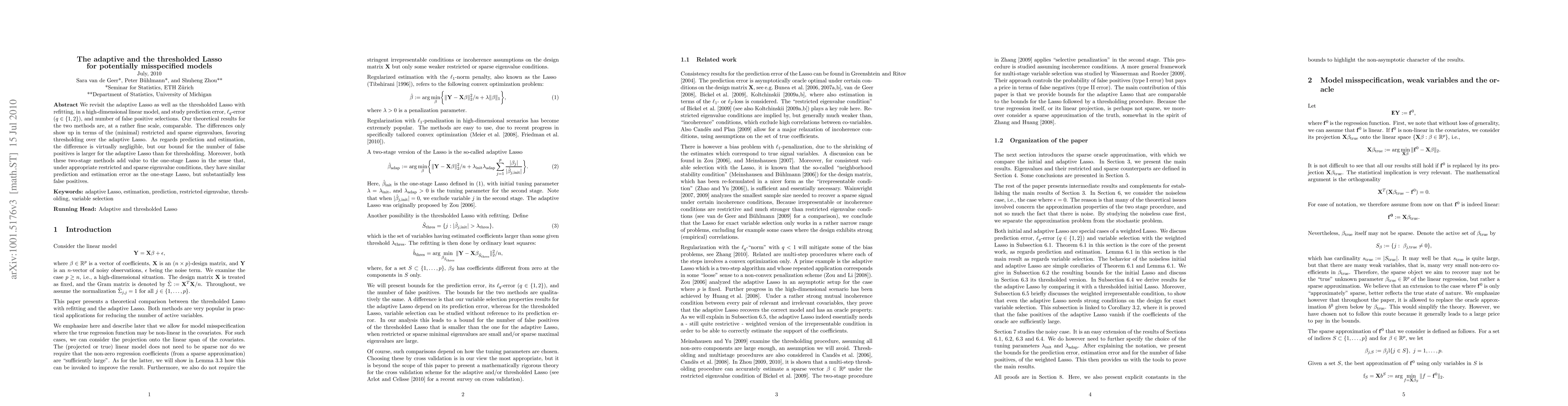 We revisit the adaptive Lasso as well as the thresholded Lasso with refitting, in a high-dimensional linear model, and study prediction error, $\ell_q$-error ($q \in \{1, 2 \} $), and number of false positive selections. Our theoretical results for the two methods are, at a rather fine scale, comparable. The differences only show up in terms of the (minimal) restricted and sparse eigenvalues, favoring thresholding over the adaptive Lasso. As regards prediction and estimation, the difference is virtually negligible, but our bound for the number of false positives is larger for the adaptive Lasso than for thresholding. Moreover, both these two-stage methods add value to the one-stage Lasso in the sense that, under appropriate restricted and sparse eigenvalue conditions, they have similar prediction and estimation error as the one-stage Lasso, but substantially less false positives.