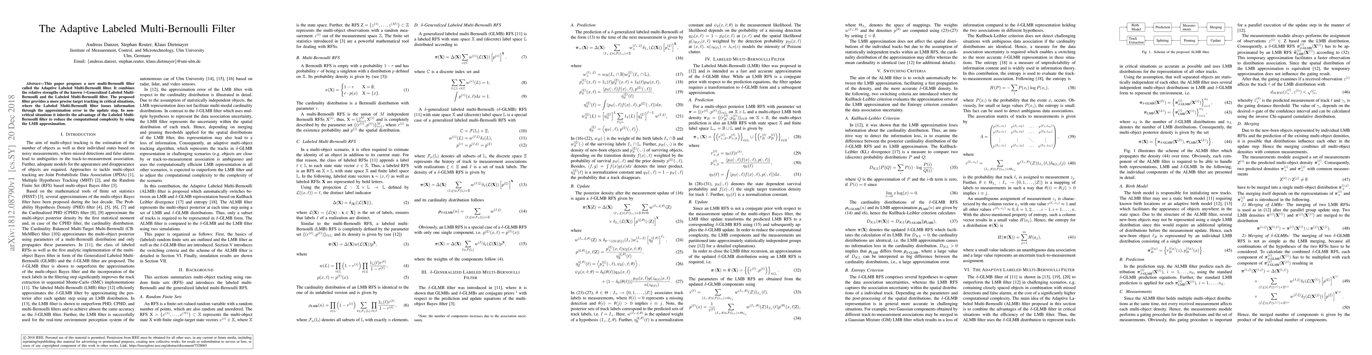 The Adaptive Labeled Multi-Bernoulli filter enhances target tracking precision in critical situations while reducing computational complexity in noncritical situations by combining the strengths of the Delta-Generalized Labeled Multi-Bernoulli and the Labeled Multi-Bernoulli filters.