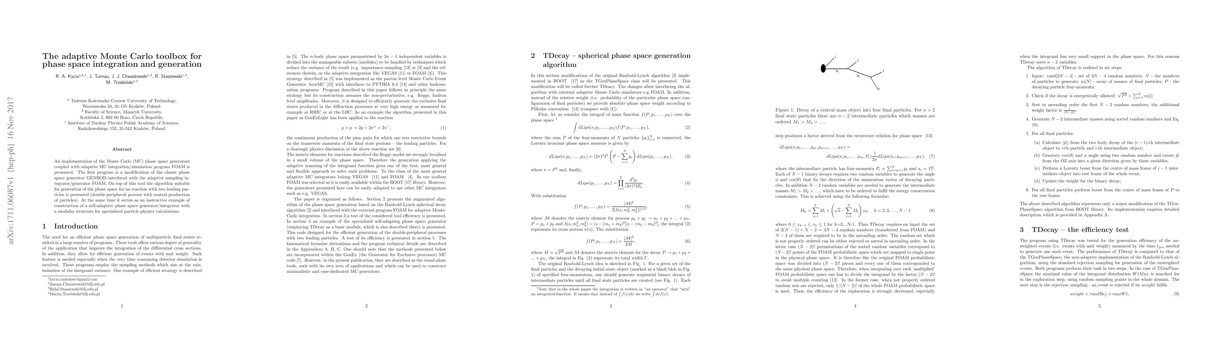 This paper introduces an adaptive Monte Carlo toolbox combining phase space generators with the FOAM integration program, showcasing a modified GENBOD and a new algorithm for double-peripheral processes, serving as a modular example for specialized particle physics simulations.