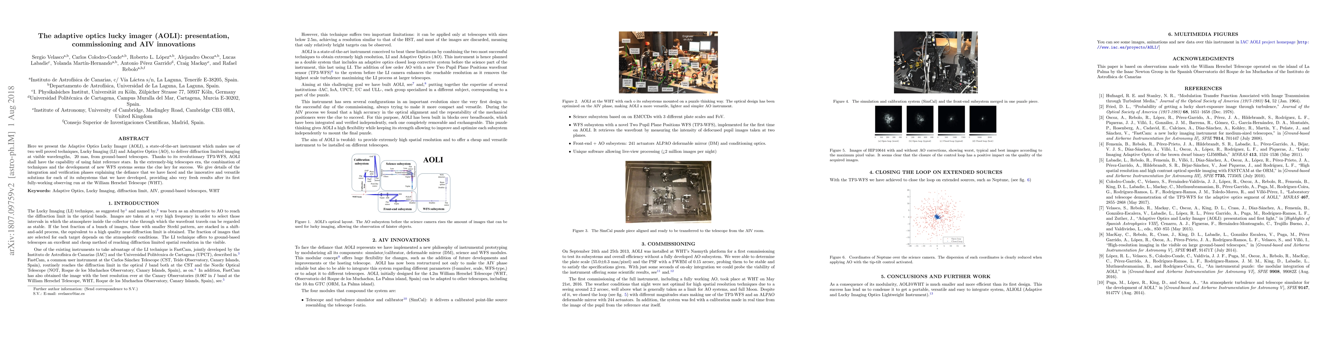The Adaptive Optics Lucky Imager (AOLI) combines Lucky Imaging and Adaptive Optics to achieve diffraction-limited imaging at visible wavelengths from ground-based telescopes. Its innovative TP3-WFS allows the use of faint reference stars, and it has successfully completed its first observing run at the William Herschel Telescope.