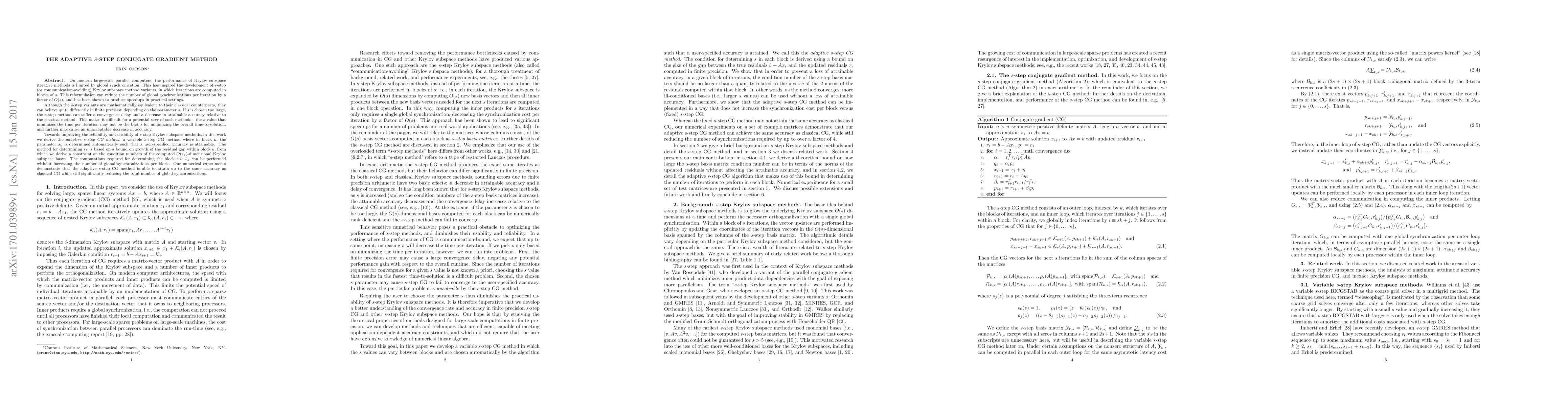 Researchers developed an adaptive $s$-step Conjugate Gradient method to optimize performance on parallel computers, reducing global synchronizations while maintaining accuracy, and demonstrated its effectiveness in numerical experiments.
