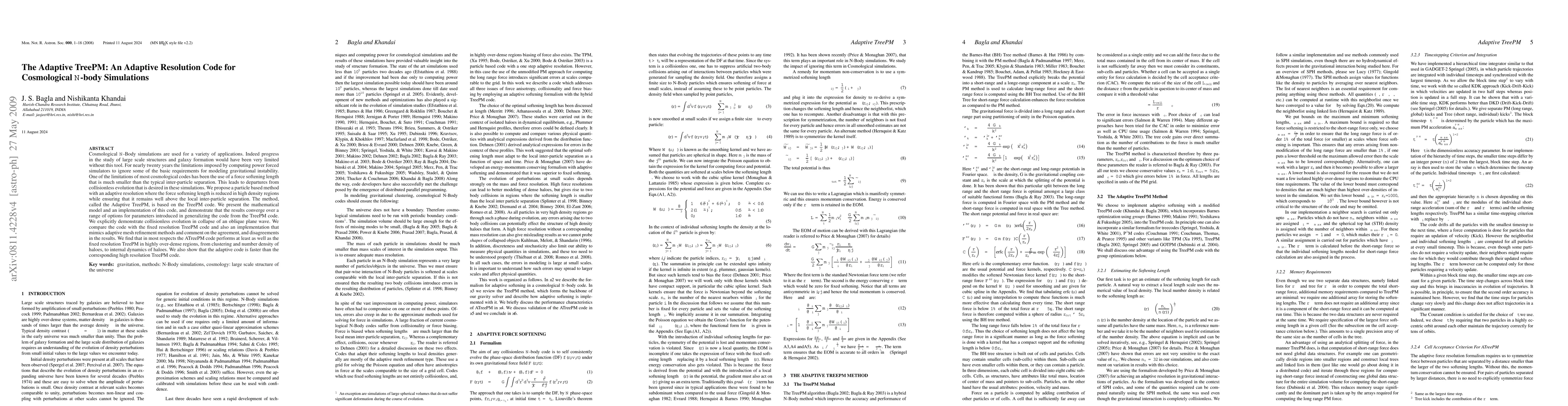 The Adaptive TreePM method introduces an adaptive resolution technique to cosmological N-body simulations, reducing force softening in high-density regions while maintaining accuracy. The method outperforms fixed resolution TreePM in over-dense regions and is faster than high-resolution alternatives.