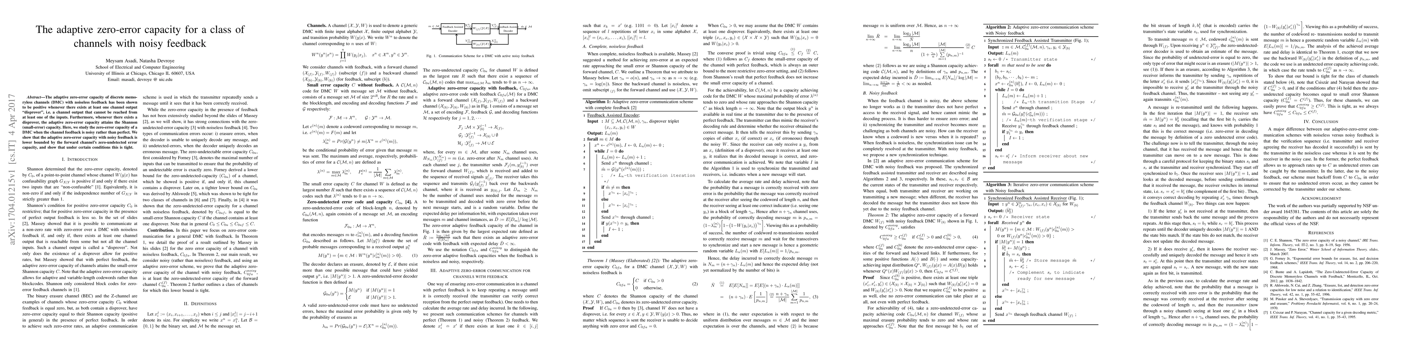 This paper investigates the adaptive zero-error capacity of discrete memoryless channels with noisy feedback, demonstrating that it is lower bounded by the forward channel's zero-undetected error capacity, and under specific conditions, this bound is tight.