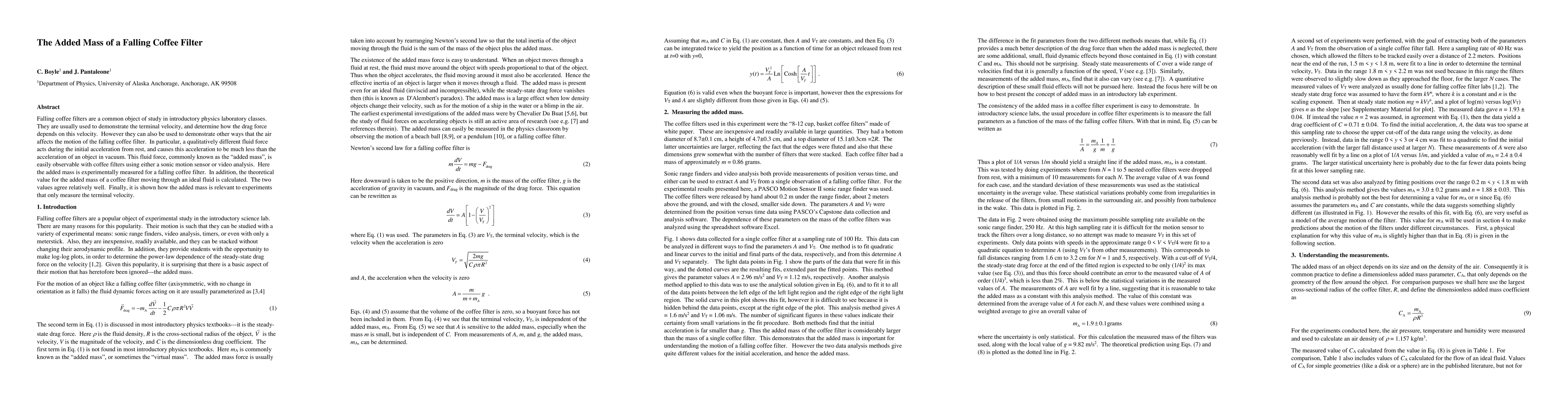 This study experimentally measures the added mass of a falling coffee filter, demonstrating its effect on initial acceleration through fluid. Theoretical calculations for the added mass in an ideal fluid are compared to experimental results, showing good agreement.
