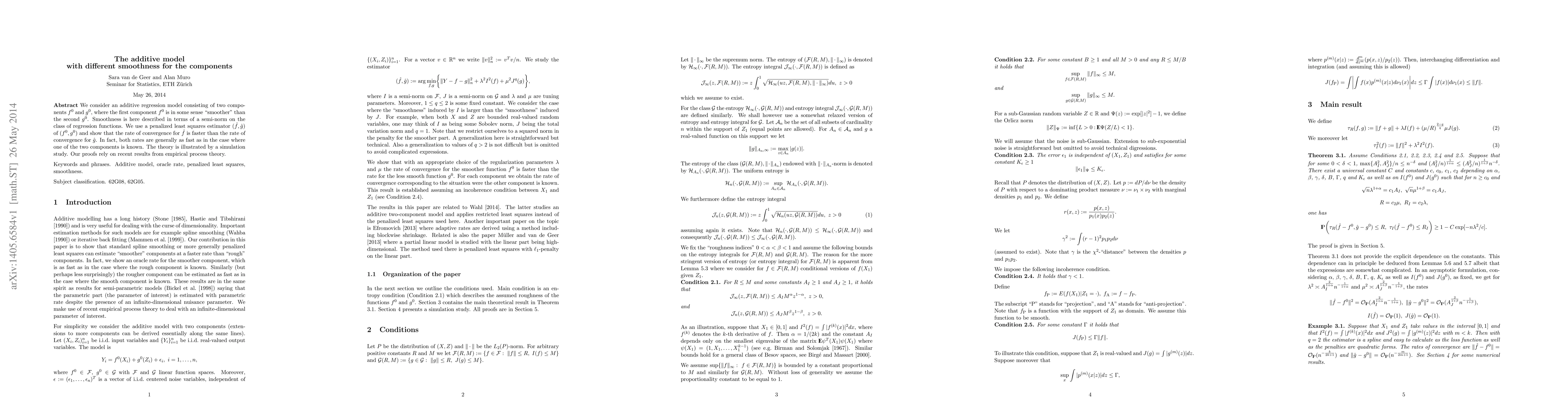 We consider an additive regression model consisting of two components $f^0$ and $g^0$, where the first component $f^0$ is in some sense "smoother" than the second $g^0$. Smoothness is here described in terms of a semi-norm on the class of regression functions. We use a penalized least squares estimator $(\hat f, \hat g)$ of $(f^0, g^0)$ and show that the rate of convergence for $\hat f $ is faster than the rate of convergence for $\hat g$. In fact, both rates are generally as fast as in the case where one of the two components is known. The theory is illustrated by a simulation study. Our proofs rely on recent results from empirical process theory.