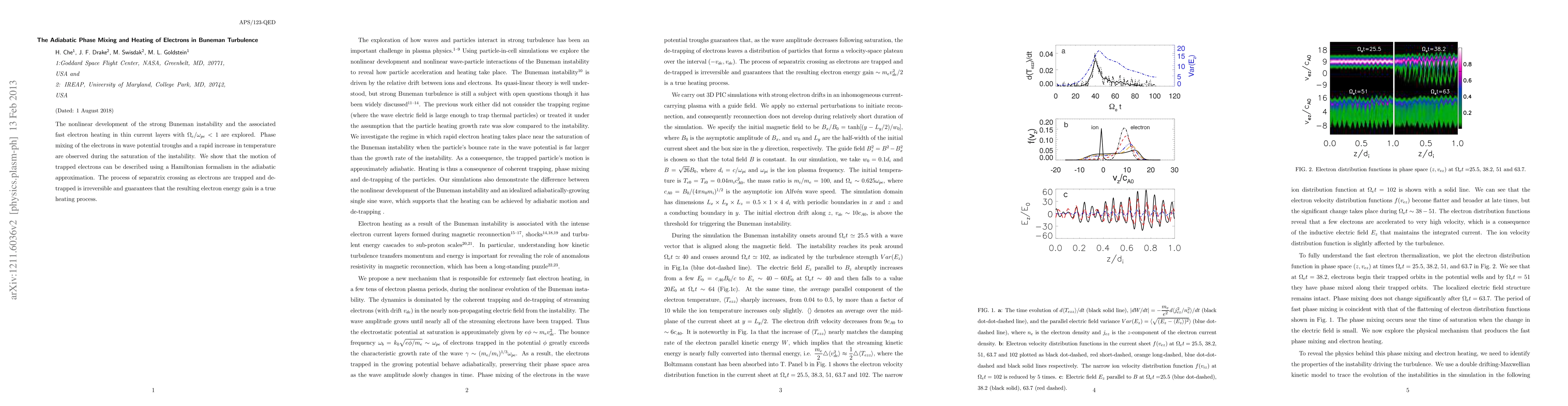 The nonlinear development of the strong Buneman instability and the associated fast electron heating in thin current layers with $\Omega_e/\omega_{pe} <1$ are explored. Phase mixing of the electrons in wave potential troughs and a rapid increase in temperature are observed during the saturation of the instability. We show that the motion of trapped electrons can be described using a Hamiltonian formalism in the adiabatic approximation. The process of separatrix crossing as electrons are trapped and de-trapped is irreversible and guarantees that the resulting electron energy gain is a true heating process.