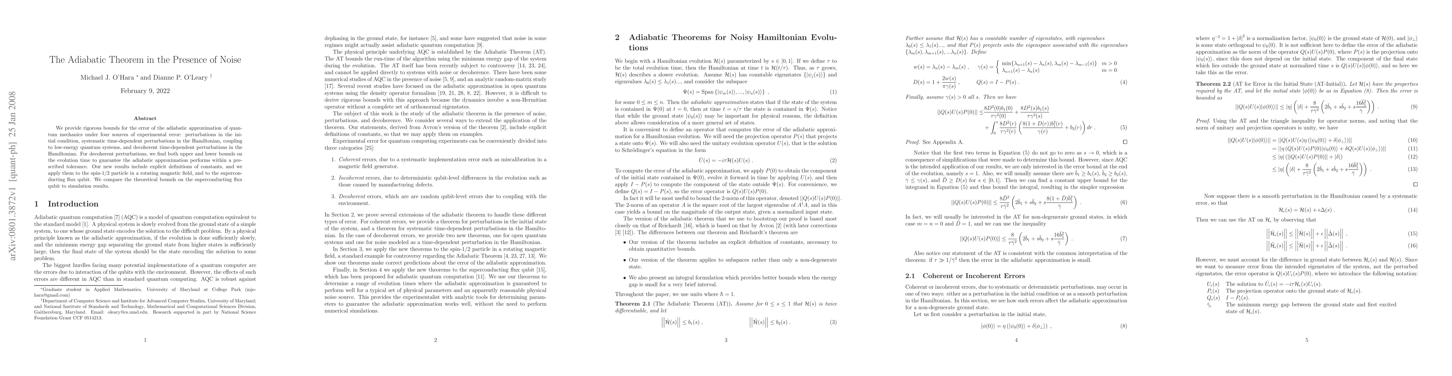 We provide rigorous bounds for the error of the adiabatic approximation of quantum mechanics under four sources of experimental error: perturbations in the initial condition, systematic time-dependent perturbations in the Hamiltonian, coupling to low-energy quantum systems, and decoherent time-dependent perturbations in the Hamiltonian. For decoherent perturbations, we find both upper and lower bounds on the evolution time to guarantee the adiabatic approximation performs within a prescribed tolerance. Our new results include explicit definitions of constants, and we apply them to the spin-1/2 particle in a rotating magnetic field, and to the superconducting flux qubit. We compare the theoretical bounds on the superconducting flux qubit to simulation results.