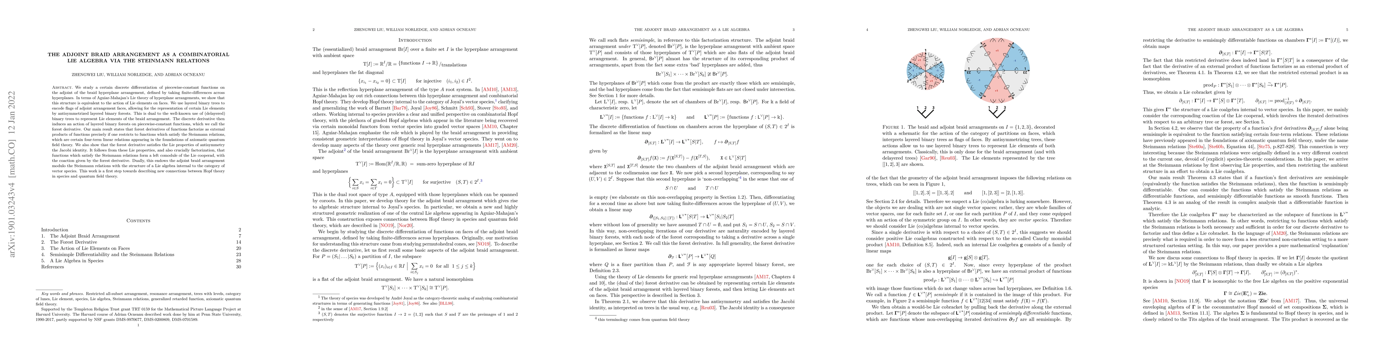 We study a certain discrete differentiation of piecewise-constant functions on the adjoint of the braid hyperplane arrangement, defined by taking finite-differences across hyperplanes. In terms of Aguiar-Mahajan's Lie theory of hyperplane arrangements, we show that this structure is equivalent to the action of Lie elements on faces. We use layered binary trees to encode flags of adjoint arrangement faces, allowing for the representation of certain Lie elements by antisymmetrized layered binary forests. This is dual to the well-known use of (delayered) binary trees to represent Lie elements of the braid arrangement. The discrete derivative then induces an action of layered binary forests on piecewise-constant functions, which we call the forest derivative. Our main result states that forest derivatives of functions factorize as external products of functions precisely if one restricts to functions which satisfy the Steinmann relations, which are certain four-term linear relations appearing in the foundations of axiomatic quantum field theory. We also show that the forest derivative satisfies the Lie properties of antisymmetry the Jacobi identity. It follows from these Lie properties, and also crucially factorization, that functions which satisfy the Steinmann relations form a left comodule of the Lie cooperad, with the coaction given by the forest derivative. Dually, this endows the adjoint braid arrangement modulo the Steinmann relations with the structure of a Lie algebra internal to the category of vector species. This work is a first step towards describing new connections between Hopf theory in species and quantum field theory.