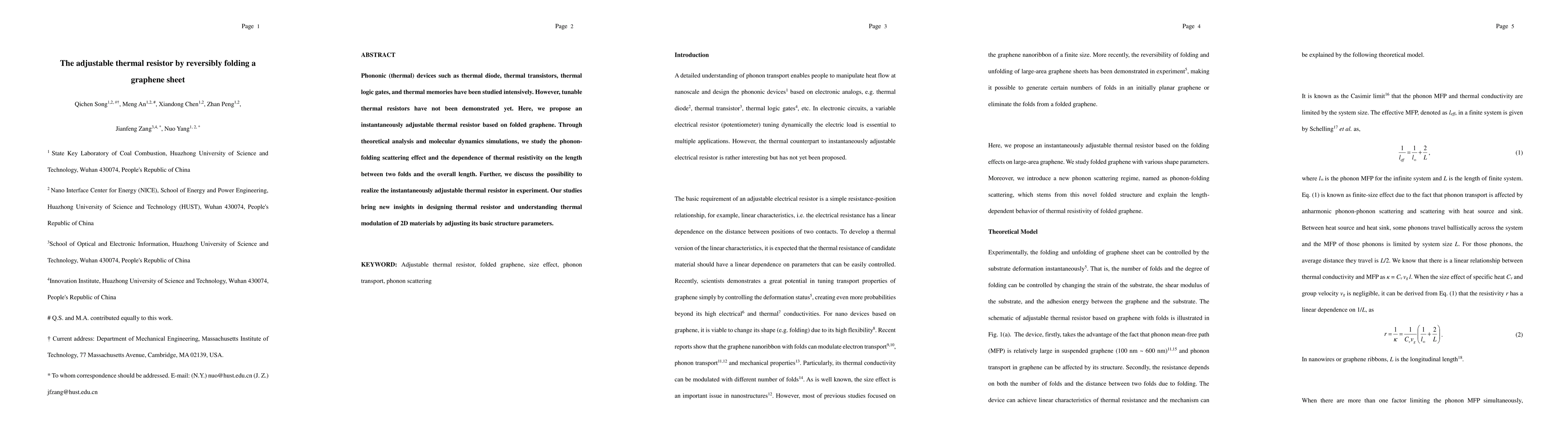 Phononic (thermal) devices are studied such as thermal diode, thermal transistors, thermal logic gates, and thermal memories. However, the thermal resistor has not been demonstrated yet. Here, we propose an instantaneously adjustable thermal resistor by folded graphene. Through theoretical analysis and molecular dynamics simulations, we studied the phonon folding effect and the dependent of thermal resistivity on the length between two folds and the overall length. Further, we discuss on the possibility to realize the instantaneously adjustable thermal resistor in experiment. Our studies bring insights in designing thermal resistor and understanding thermal modulation of 2D materials by adjusting its basic structure parameters.