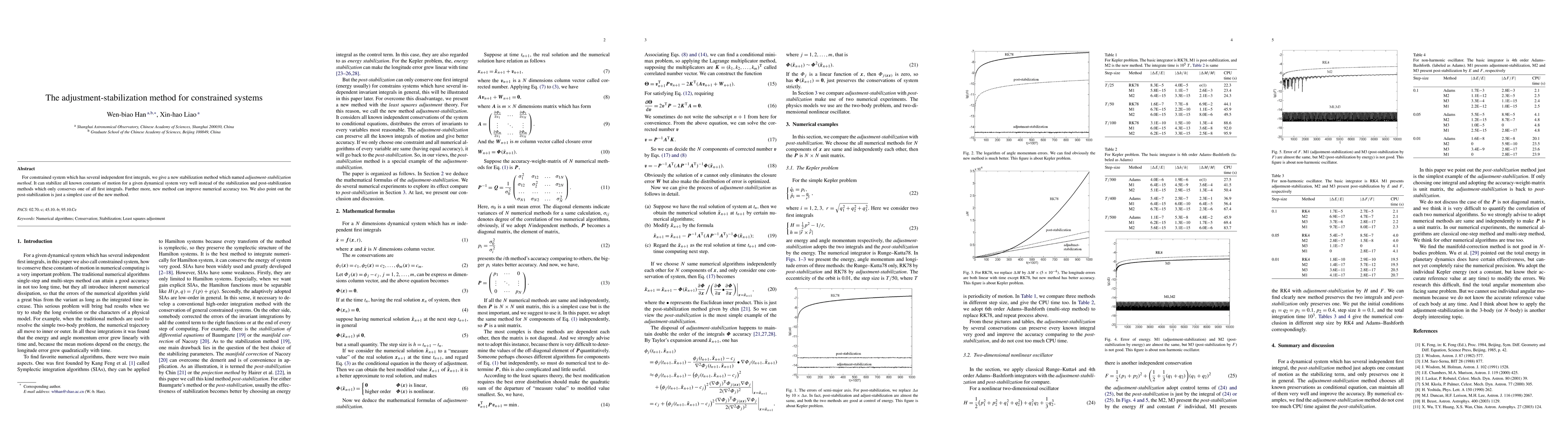 For constrained system which has several independent first integrals, we give a new stabilization method which named adjustment-stabilization method. It can stabilize all known constants of motion for a given dynamical system very well instead of the stabilization and post-stabilization methods which only conserves one of all first integrals. Further more, new method can improve numerical accuracy too. We also point out the post-stabilization is just a simplest case of the new method.