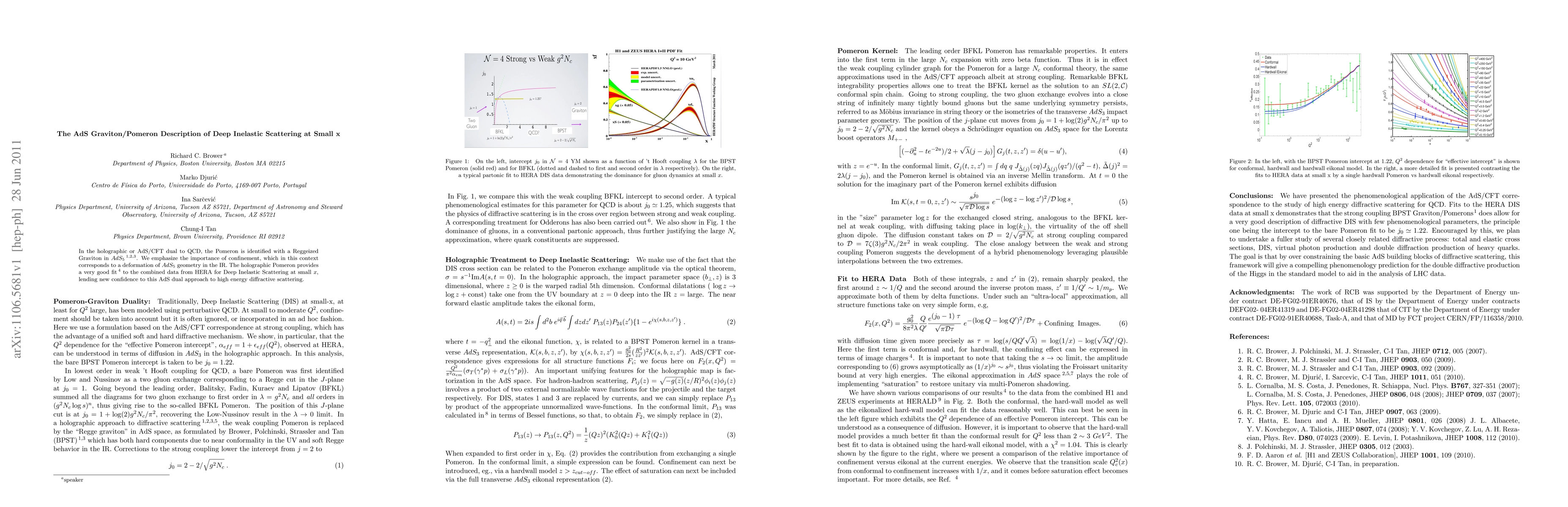In the holographic or AdS/CFT dual to QCD, the Pomeron is identified with a Reggeized Graviton in $AdS_5$. We emphasize the importance of confinement, which in this context corresponds to a deformation of $AdS_5$ geometry in the IR. The holographic Pomeron provides a very good fit to the combined data from HERA for Deep Inelastic Scattering at small $x$, lending new confidence to this AdS dual approach to high energy diffractive scattering.