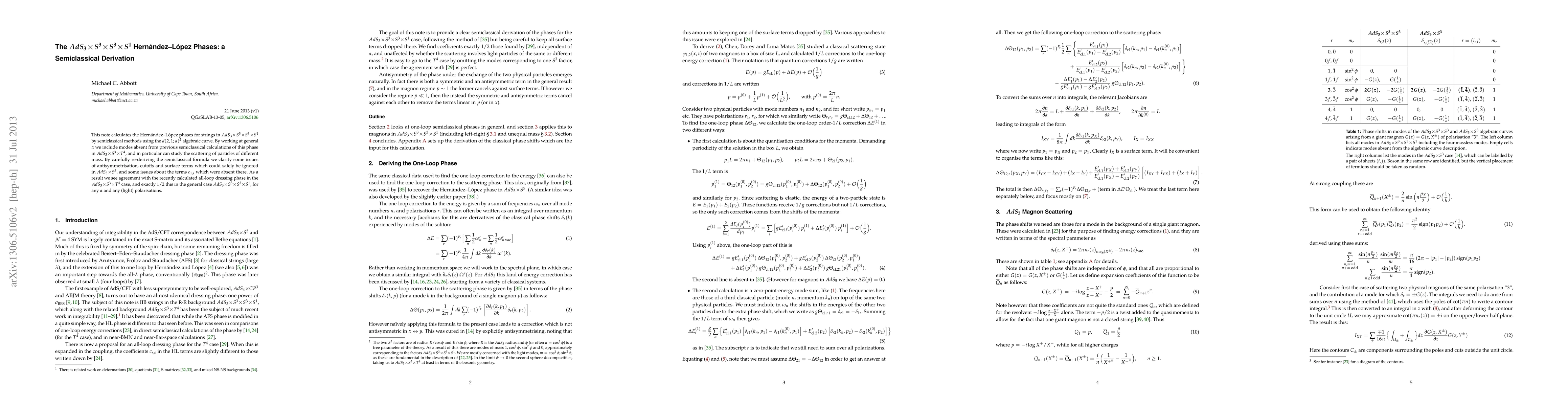 This research calculates the Hernandez-Lopez phases for strings in AdS3 x S3 x S3 x S1 using semiclassical methods, including new modes and different mass particles, and clarifies issues about antisymmetrisation and surface terms. The derived phase matches all-loop calculations in AdS3 x S3 x T4 and is exactly half in the more general case.