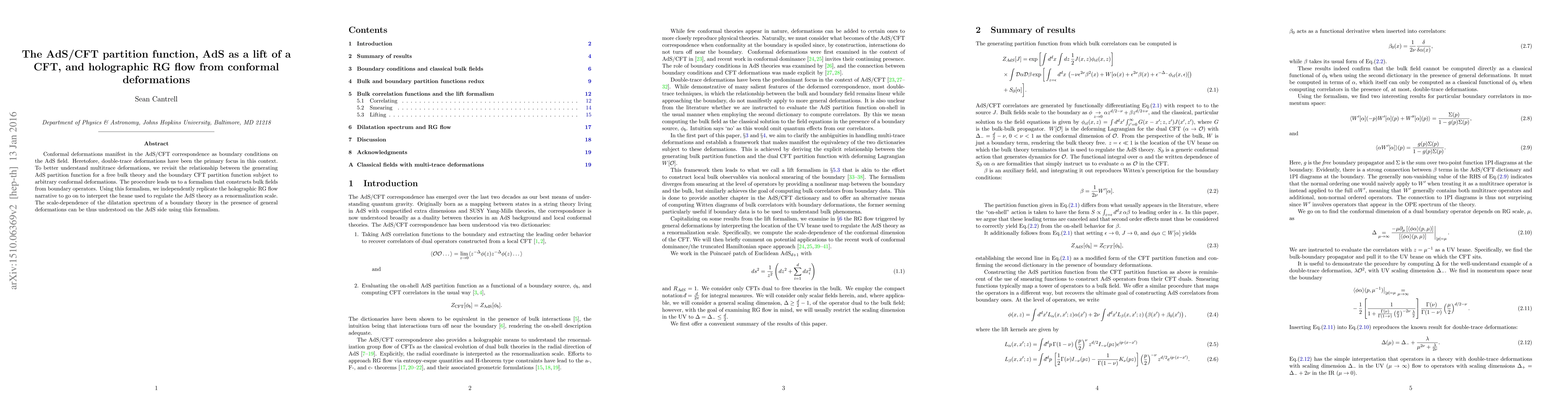 This paper explores the AdS/CFT correspondence by examining the relationship between the AdS partition function and conformal field theories (CFTs) under arbitrary deformations. It develops a formalism to construct bulk fields from boundary operators and uses this to replicate and interpret the holographic renormalization group (RG) flow, viewing the AdS brane as a renormalization scale.