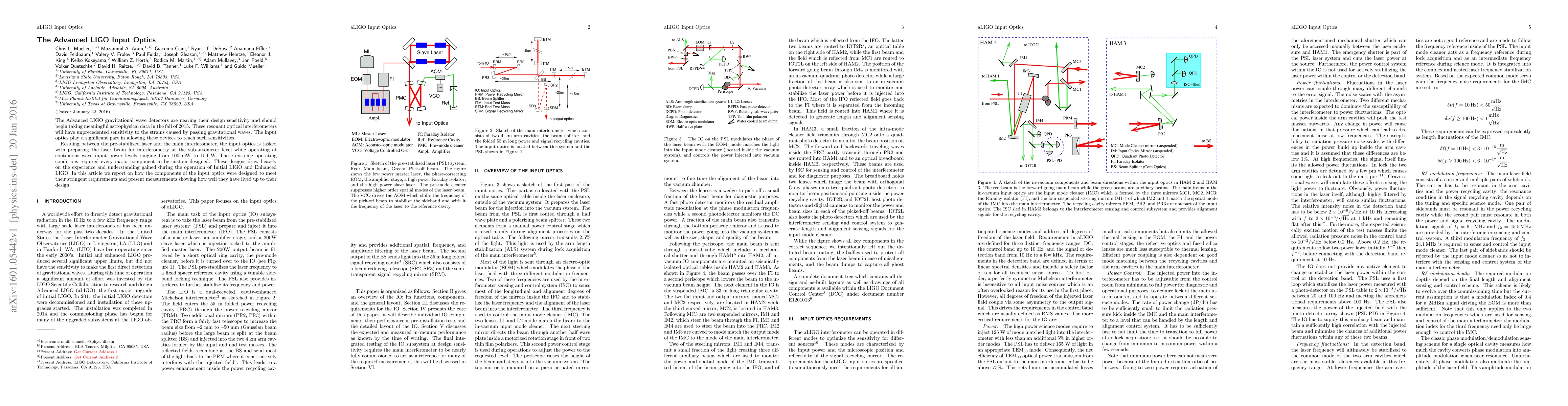 The Advanced LIGO input optics, designed to prepare laser beams for gravitational wave detection, were custom-built to operate under extreme power conditions, drawing from previous LIGO iterations. This article details the design and performance of these components, demonstrating their success in meeting stringent sensitivity requirements.