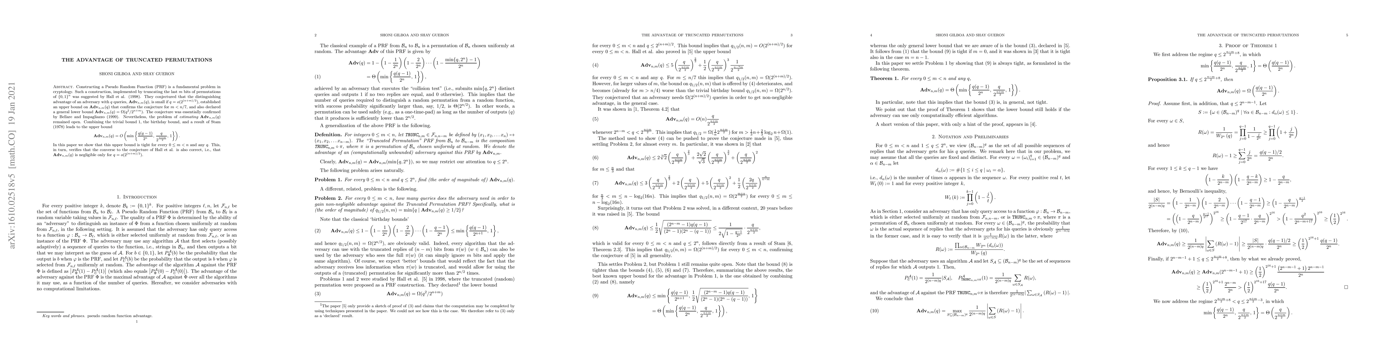 cryptology. Such a construction, implemented by truncating the last $m$ bits of