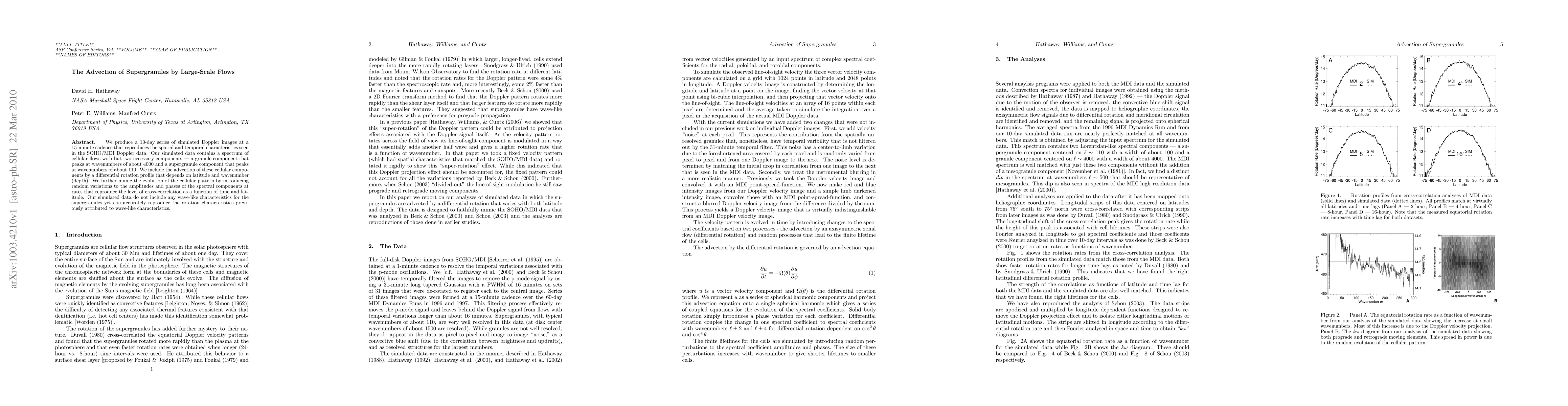 This paper simulates Doppler images to study the advection of supergranules by large-scale flows, reproducing spatial and temporal characteristics observed in SOHO/MDI data. The simulation includes a granule and supergranule component, with differential rotation and random variations mimicking real data, without wave-like characteristics yet still capturing rotation features.