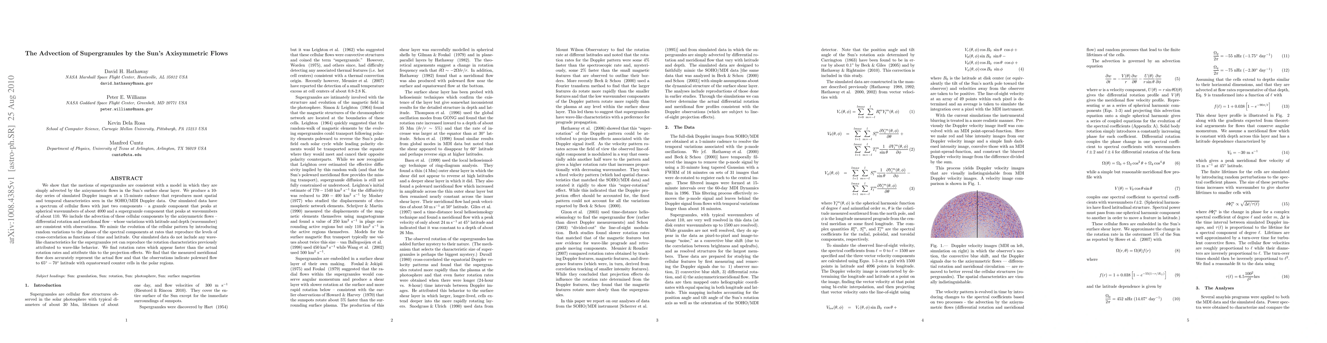 This paper demonstrates that supergranules' motions are primarily driven by the Sun's axisymmetric surface flows, specifically differential rotation and meridional flow, rather than wave-like behavior. Simulated Doppler images replicate observed characteristics, showing that the advection of supergranules by these flows can reproduce the rotation rates and meridional flow patterns seen in SOHO/MDI data.