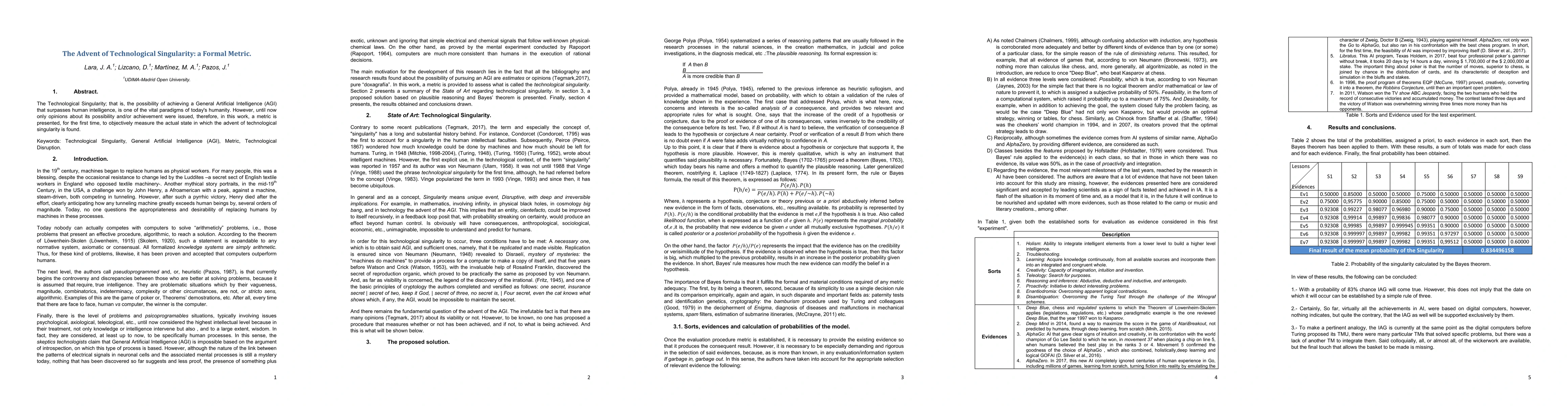 The Technological Singularity; that is, the possibility of achieving a General Artificial Intelligence (AGI) that surpasses human intelligence, is one of the vital paradigms of today's humanity. However, until now only opinions about its possibility and/or achievement were issued, therefore, in this work, a metric is presented, for the first time, to objectively measure the actual state in which the advent of technological singularity is found.