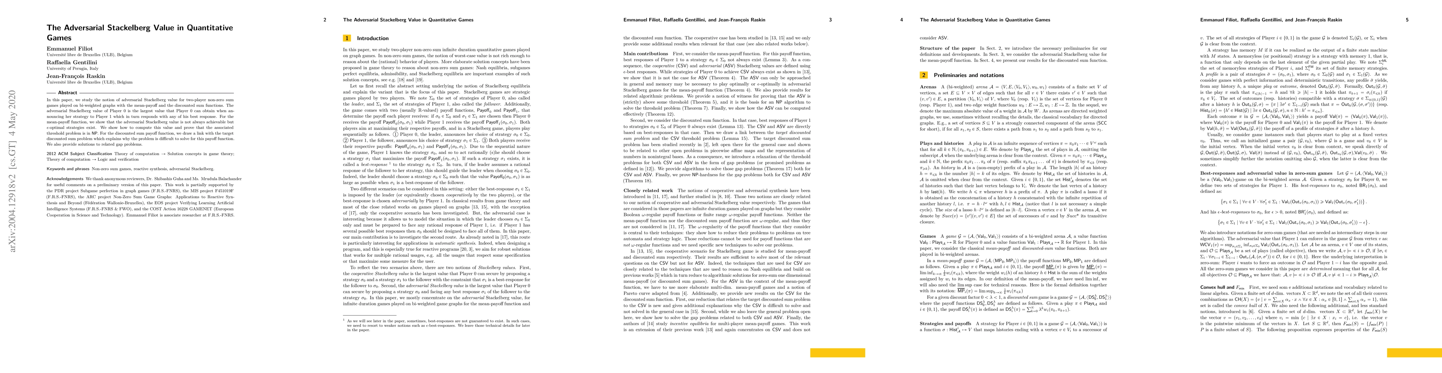 This paper studies adversarial Stackelberg value in two-player games on bi-weighted graphs for mean-payoff and discounted sum functions, showing that it's not always achievable but has epsilon-optimal strategies, and providing computational methods and NP-completeness proofs.