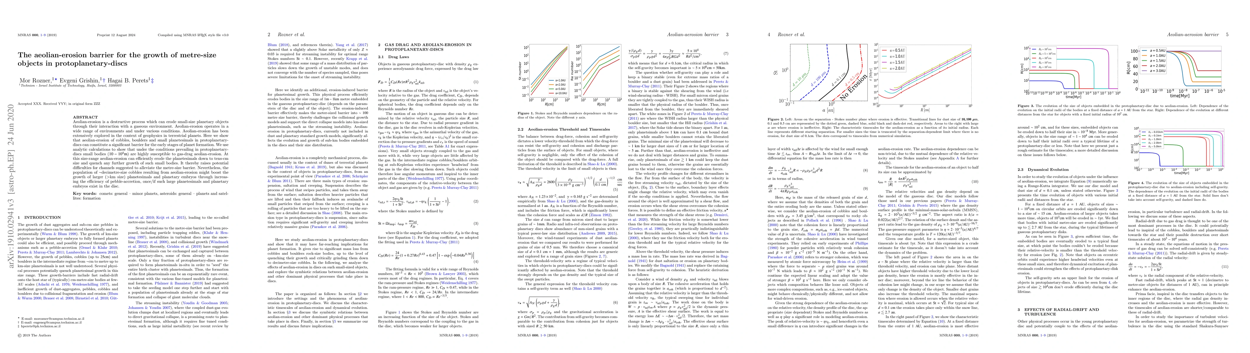 The paper presents an analytic model for aeolian-erosion of cobbles, boulders, and planetesimals in protoplanetary discs, providing fast erosion timescales comparable to laboratory experiments.