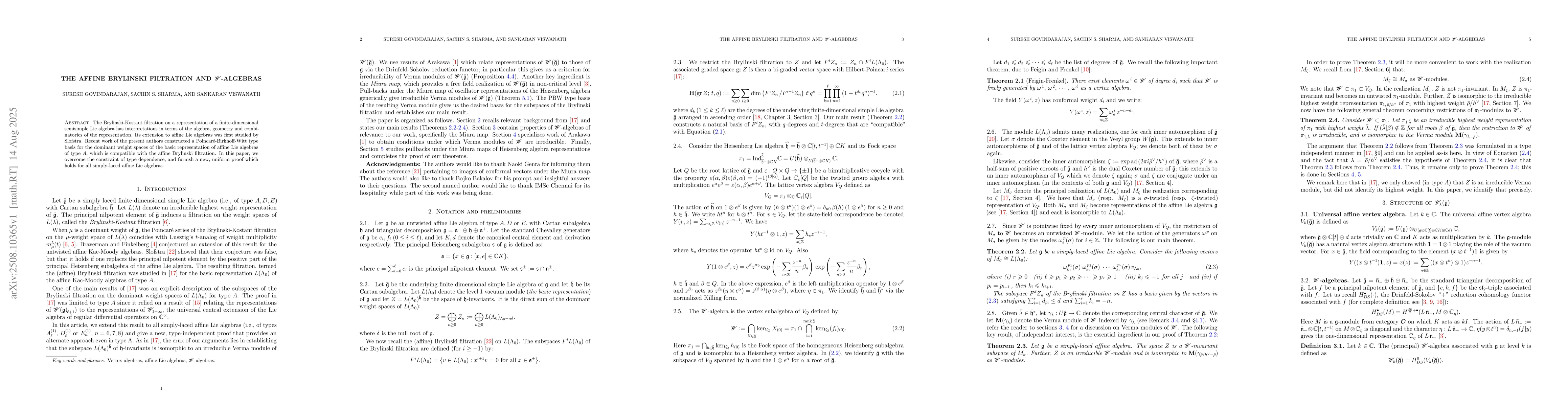 The Brylinski-Kostant filtration on a representation of a finite-dimensional semisimple Lie algebra has interpretations in terms of the algebra, geometry and combinatorics of the representation. Its extension to affine Lie algebras was first studied by Slofstra. Recent work of the present authors constructed a Poincar\'{e}-Birkhoff-Witt type basis for the dominant weight spaces of the basic representation of affine Lie algebras of type $A$, which is compatible with the affine Brylinski filtration. In this paper, we overcome the constraint of type dependence, and furnish a new, uniform proof which holds for all simply-laced affine Lie algebras.